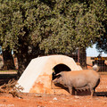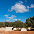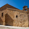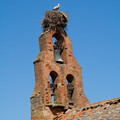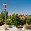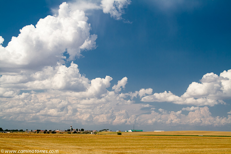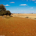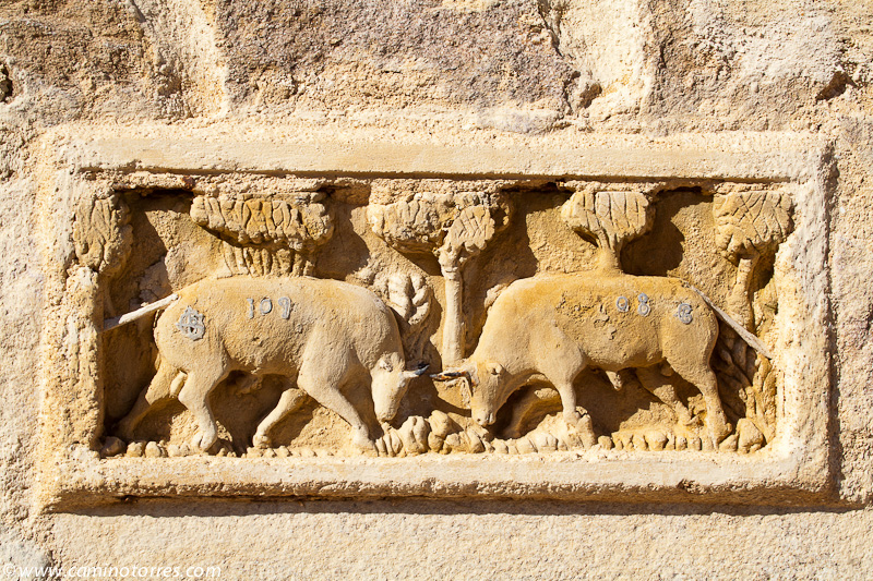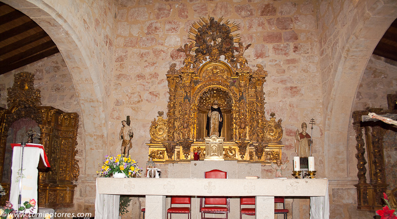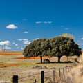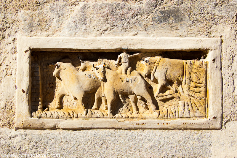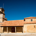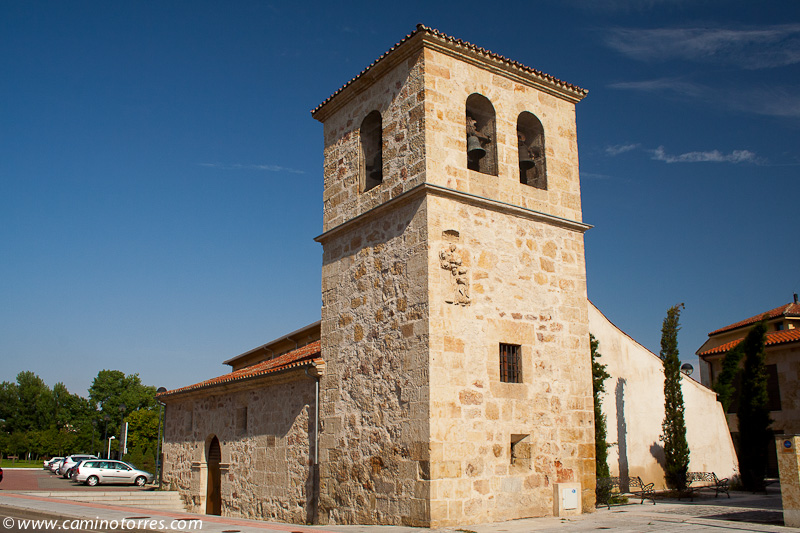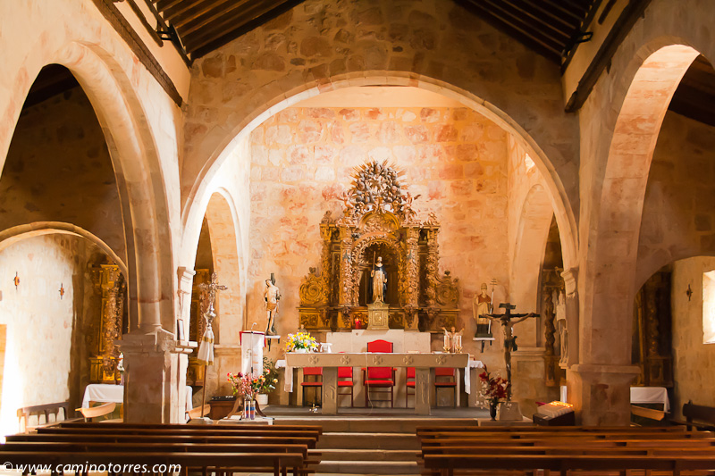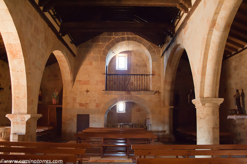 Durante tres kilómetros disponemos de la sombra de algunas encinas, pero después la cañada va entre campos de cultivo de secano durante dos kilómetros. Cuando llegamos de nuevo a un encinar y a un cruce de cuatro caminos, no seguimos la señal para bicicletas de las estacas que seguiría de frente por la Cañada Real, si no que giramos a la derecha y luego inmediatamente a la izquierda para caminar por una pista que nos deja en la carretera que nos conducirá después de un kilómetro hasta Robliza de Cojos. Nos recibe esta agradable población con su iglesia dedicada a Santo Domingo de Guzmán y su albergue de peregrinos.