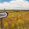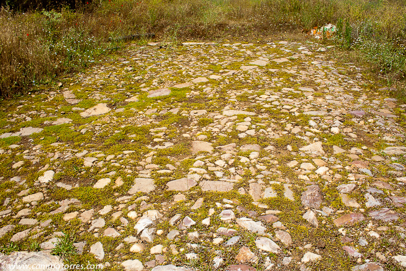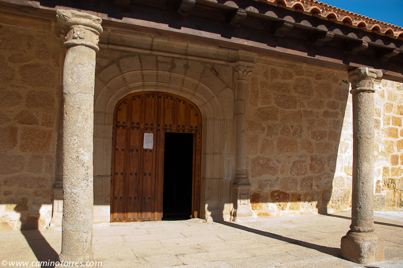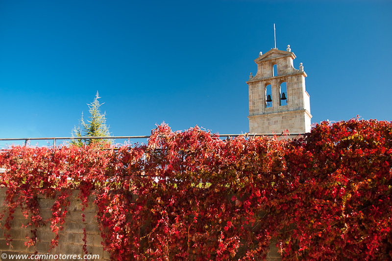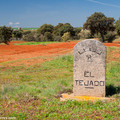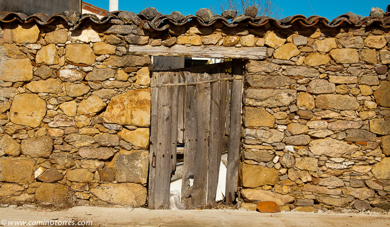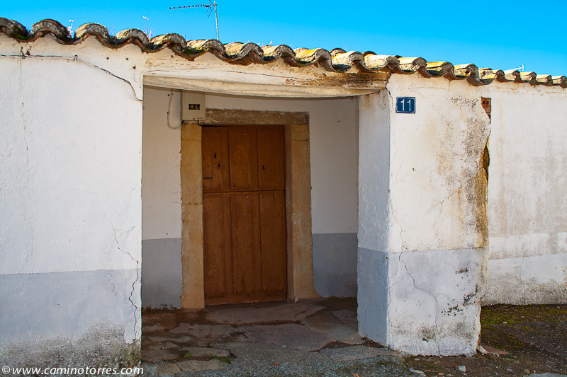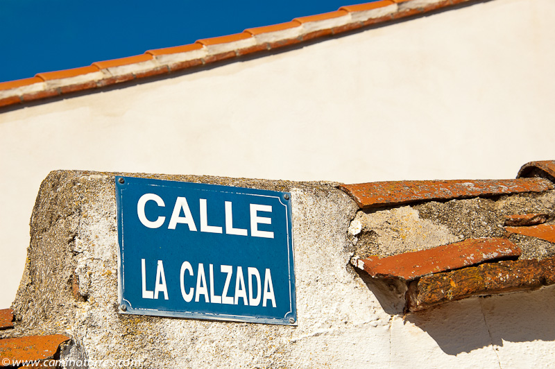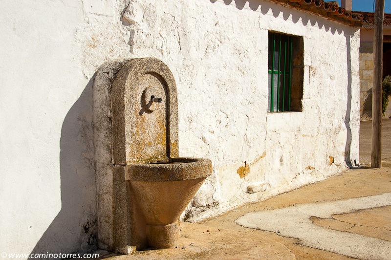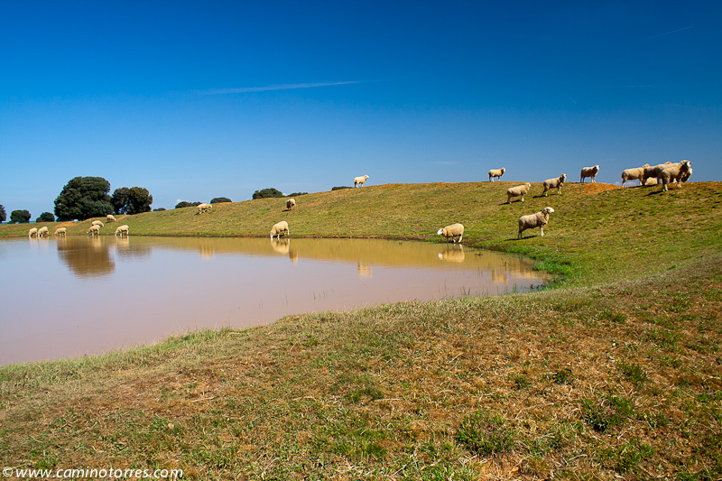 En un cruce importante nosotros seguimos de frente por la Cañada Real siguiendo la señalización de los postes balizados. Este cruce a la izquierda llevaría a El Tejado, con su ermita de San Silvestre y la torre del castillo del siglo XV que podemos contemplar a lo lejos. A la derecha sale el camino que después de cuatro kilómetros llevaría a Calzada de Don Diego, lugar en donde Torres Villarroel hizo parada en su primera escapada a Portugal. Esta población no cuenta con lugar para la pernocta del caminante.