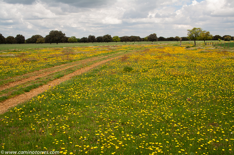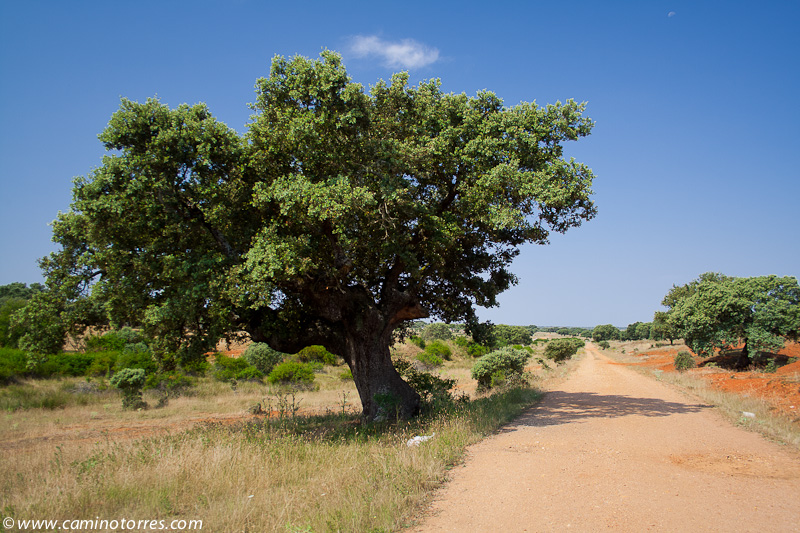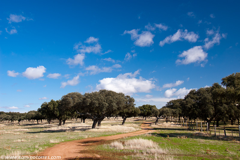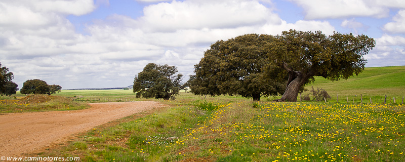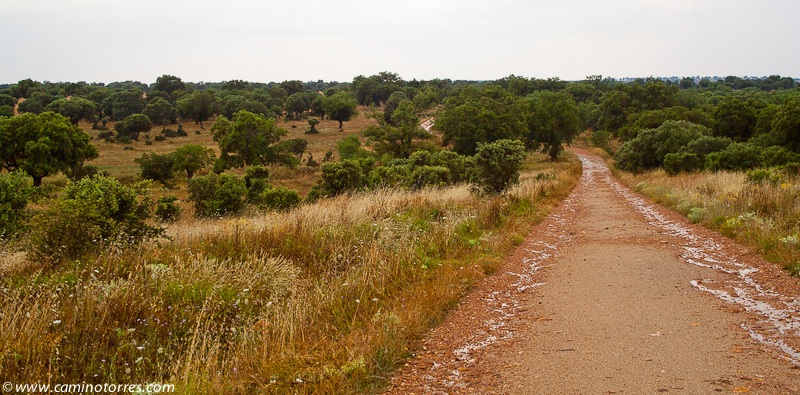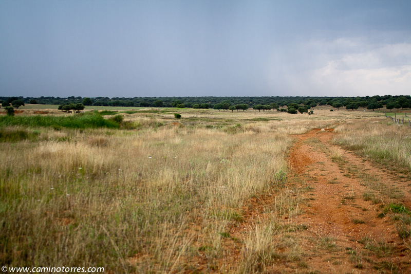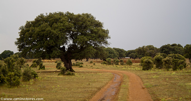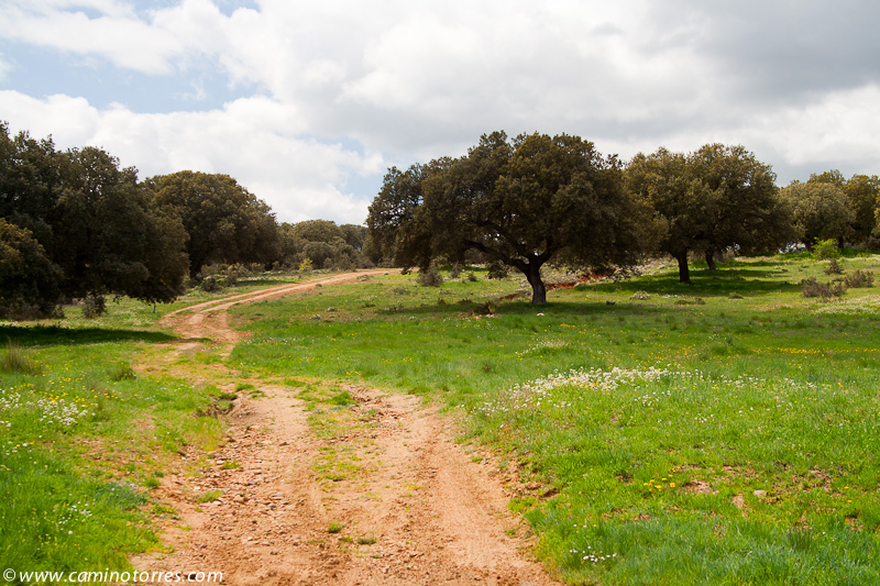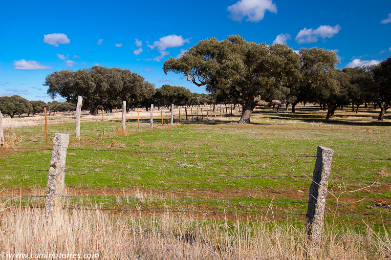A partir de aquí, la cañada se convierte en un corredor perfectamente delimitado, conservando su anchura original de 90 varas castellanas (75 metros), lo que nos permite disfrutar plenamente de esta joya ecológica en todo su esplendor. La cañada configura un tramo en el que avanzamos por un agradable camino entre encinas y monte bajo. Deberemos tener cuidado de dejar las porteras que encontremos a nuestro paso igual que las hemos encontrado. La soledad, la paz, la tranquilidad y el sosiego de la dehesa salmantina lo inunda todo.