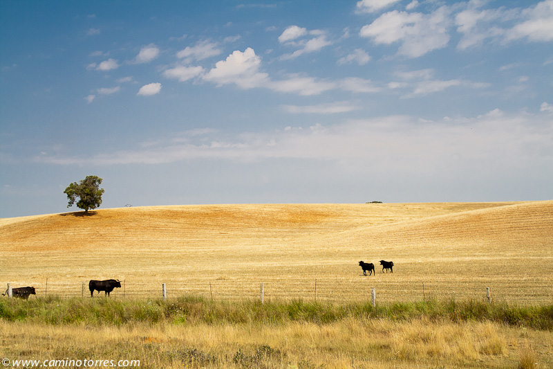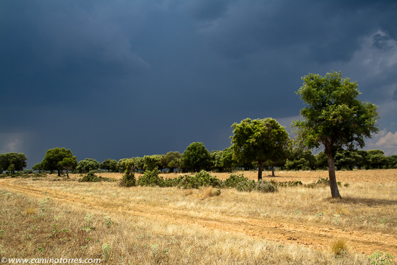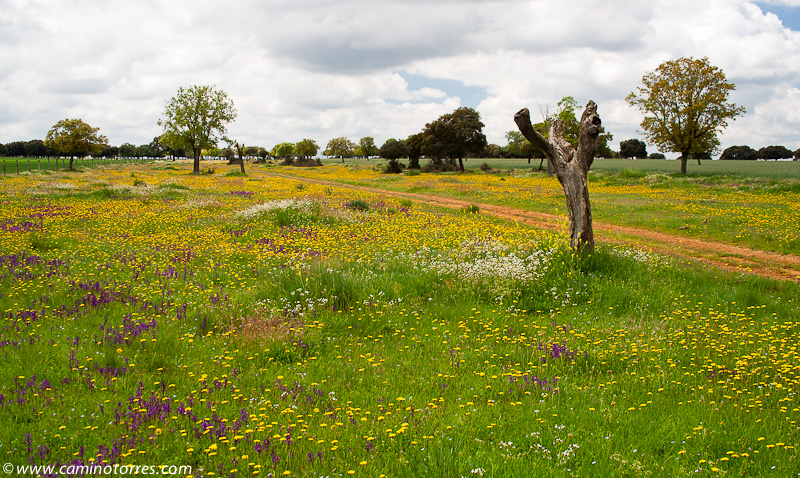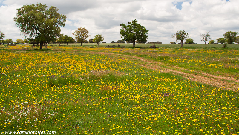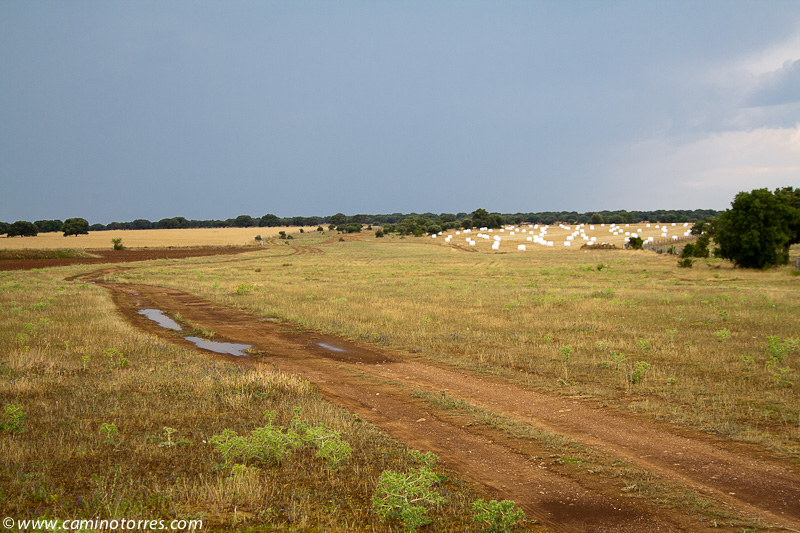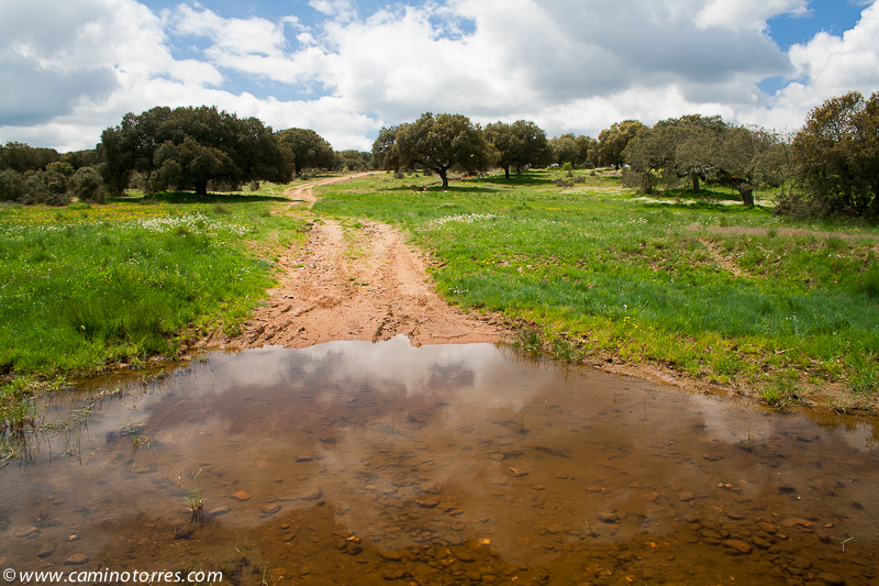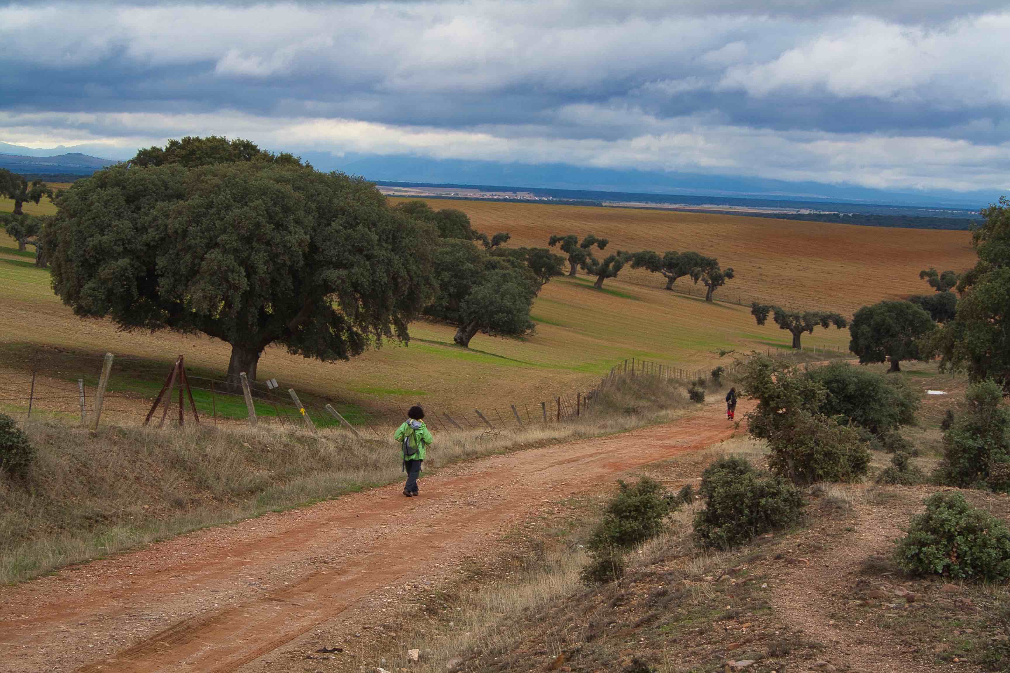A partir de aquí, la cañada se convierte en un corredor perfectamente delimitado, conservando su anchura original de 90 varas castellanas (75 metros), lo que nos permite disfrutar plenamente de esta joya ecológica en todo su esplendor. La cañada configura un tramo en el que avanzamos por un agradable camino entre encinas y monte bajo. Deberemos tener cuidado de dejar las porteras que encontremos a nuestro paso igual que las hemos encontrado. La soledad, la paz, la tranquilidad y el sosiego de la dehesa salmantina lo inunda todo.