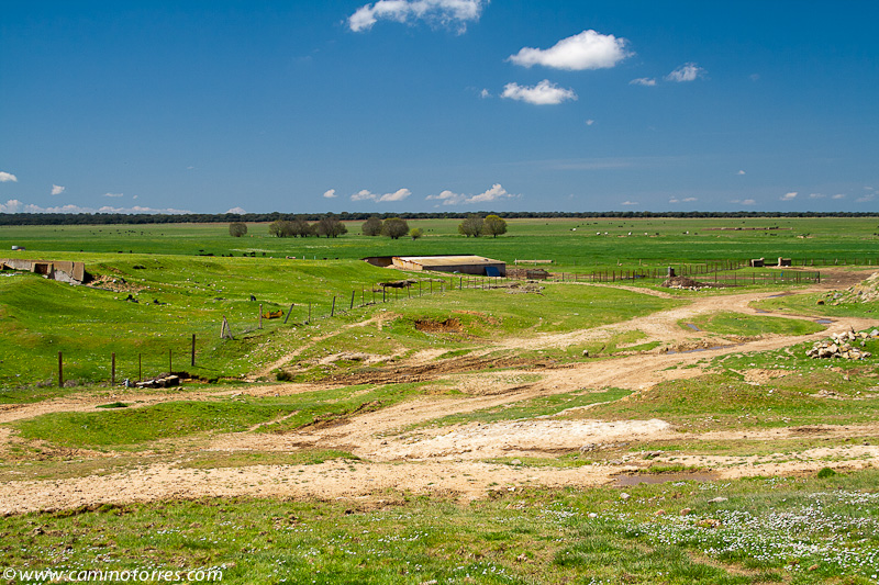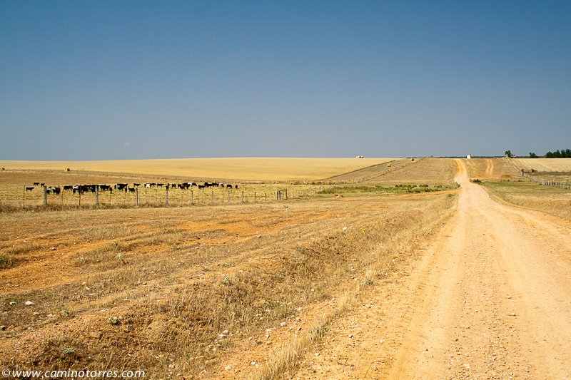 El camino habitual, es el que desde el albergue nos lleva hacia las piscinas, el depósito de agua y el silo, hasta incorporarnos a la carretera que conduce a Matilla de los Caños del Río y que en la etapa anterior cogimos en sentido contrario para llegar a Robliza de Cojos. Tras recorrer dos kilómetros y medio por asfalto, alcanzamos el cruce con la Cañada Real de Extremadura, donde un indicador metálico señala el desvío hacia Cojos de Robliza. Continuamos por una amplia pista y, tras dos kilómetros, llegamos a Cojos de Robliza, una explotación agropecuaria en la que destaca la hermosa ermita de la Virgen de los Remedios.