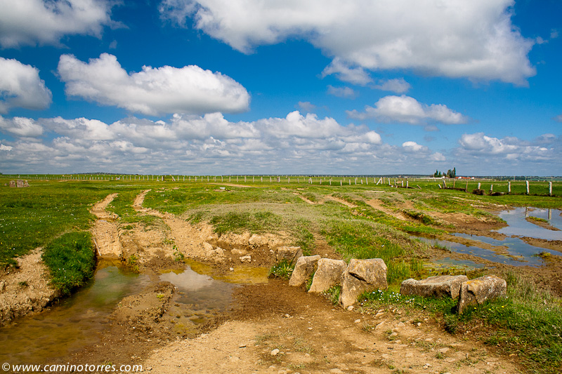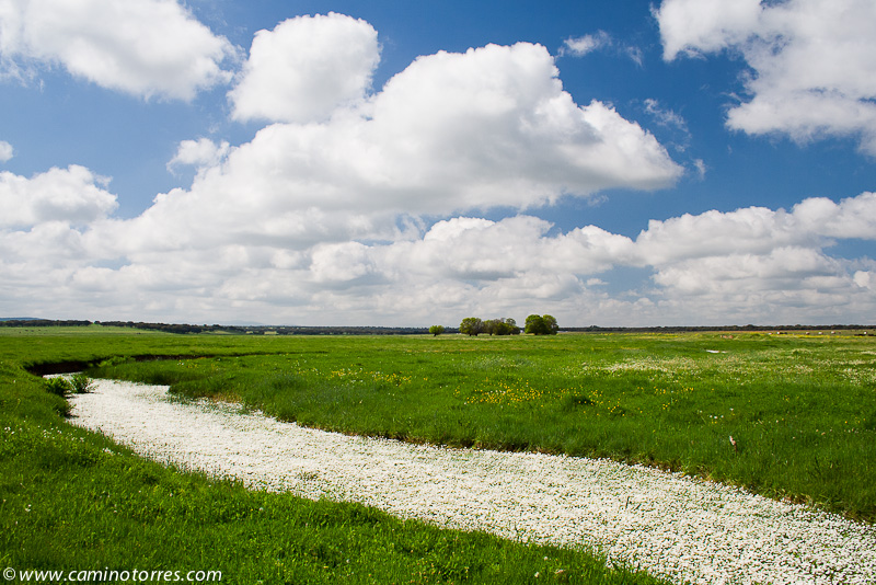 Vadeamos sin grandes problemas el arroyo de Valdemoro. Cruzamos la carretera que a la derecha en tres kilómetros nos llevaría a Aldehuela de la Bóveda y pasamos por la proximidad de dos fincas, los Cuartos de Pilar y Sánchez Arjona. Finalmente, el camino desciende, atravesando un bello paisaje, hasta llegar a San Muñoz, a la orilla del río Huebra, donde encontraremos el albergue de peregrinos.