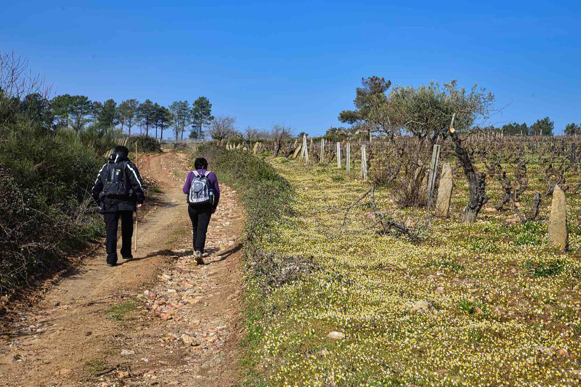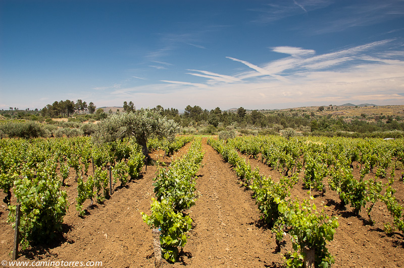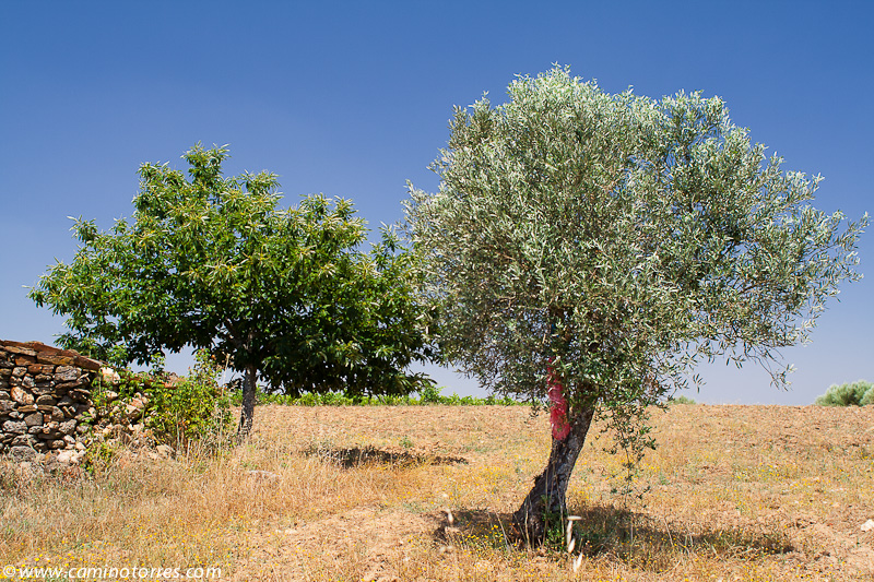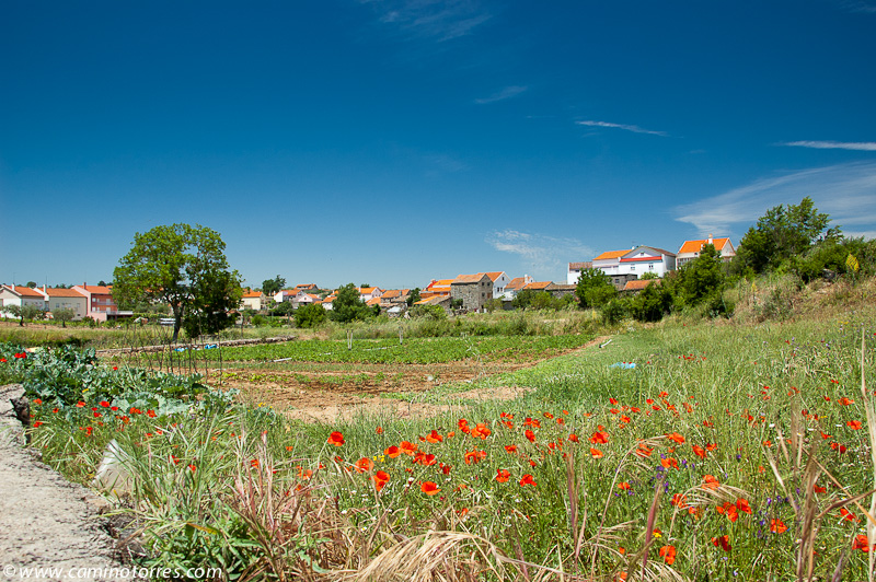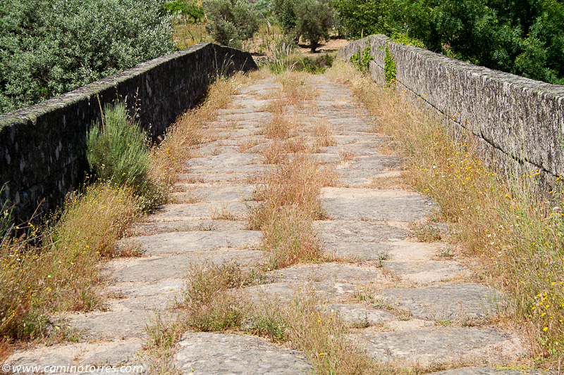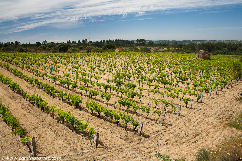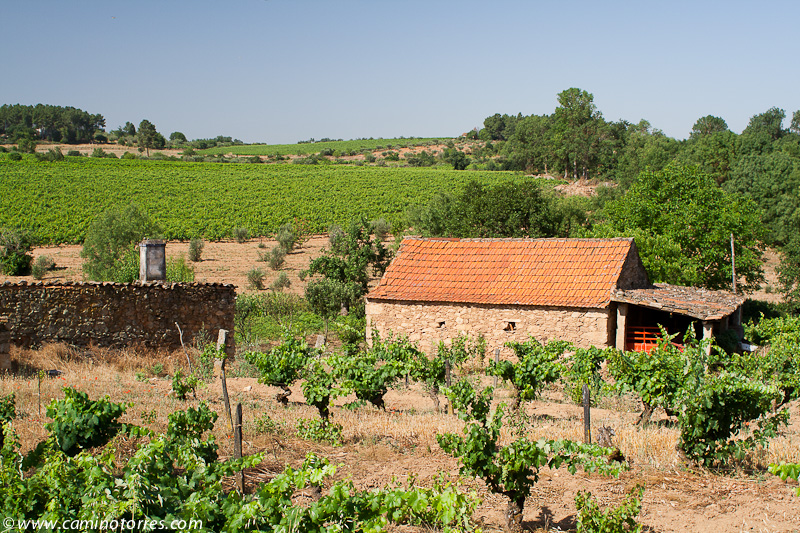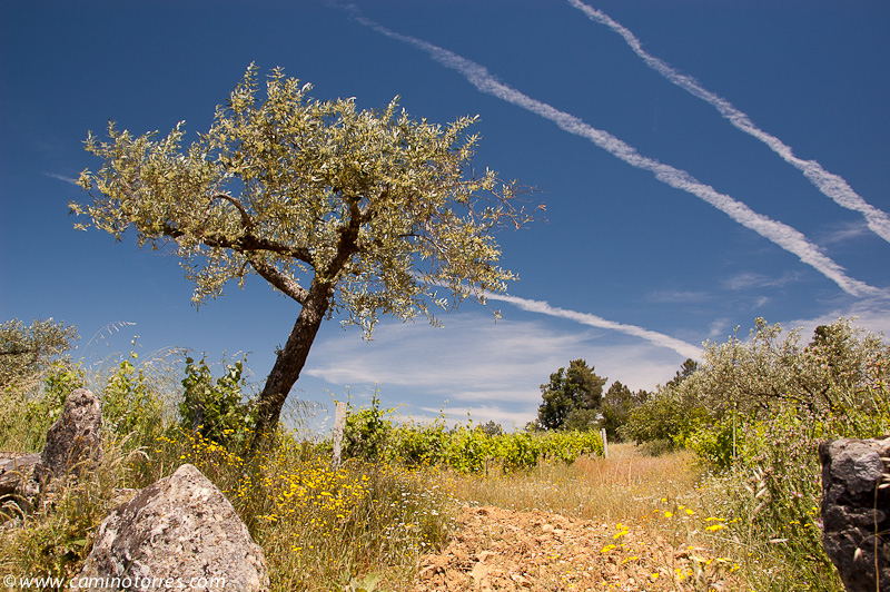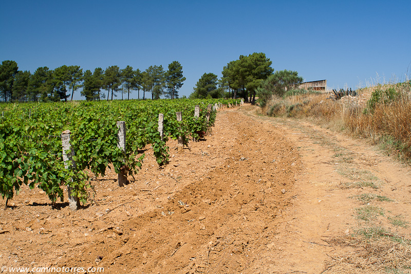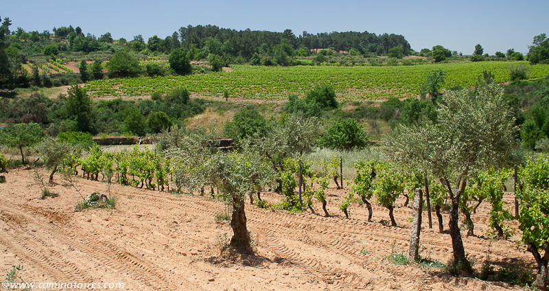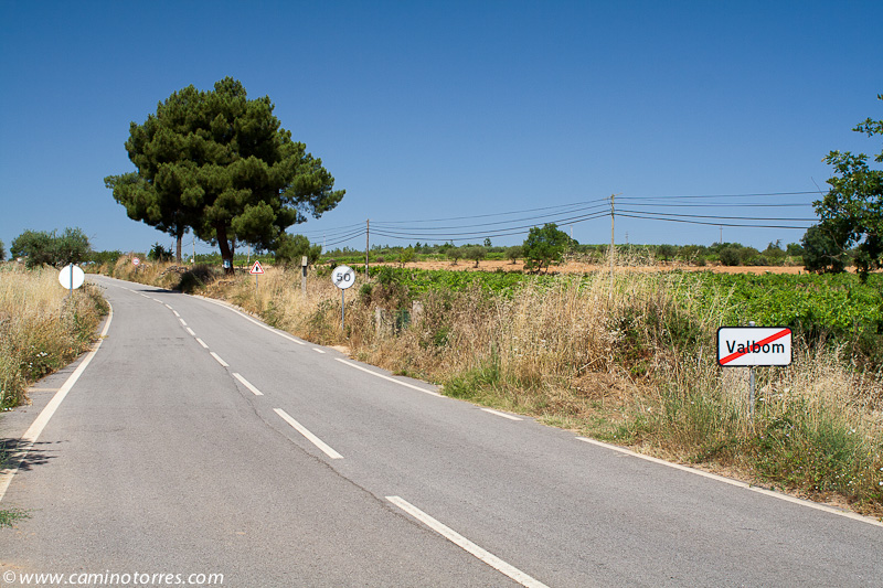 Dejamos inmediatamente después el asfalto y seguimos por una pista a la izquierda que entre pinos y viñas muy bien cuidadas nos lleva a una carretera que seguimos a la derecha y dejamos poco después para continuar por una pista que ya nos lleva hasta Valbom entre olivos y viñas. A medida que entramos en la población, vamos viendo el conjunto que forman el puente medieval y la iglesia Matriz.