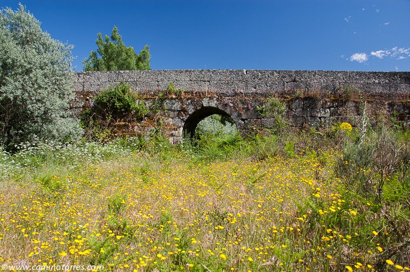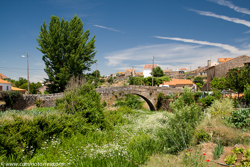 En la salida de Pinhel atravesamos la parte nueva de la ciudad por las avenidas de Carneiro Gusmão y Gago Coutinho y en descenso llegamos al puente que permite cruzar la ribeira da Pêga, el segundo de los ríos, junto a la ribeira das Cabras, que rodean a Pinhel y la convertían en una fortaleza inexpugnable.