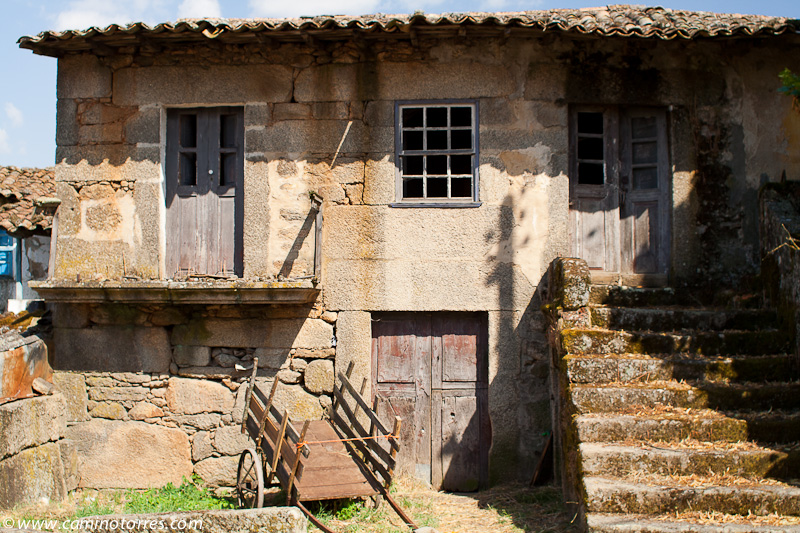 Antes de llegar a la desembocadura de la ribeira de Vale de Mouro, cambiamos de rumbo, dejamos este río a nuestra izquierda y seguimos por una pista ascendente algo accidentada que llega a una carretera. A la derecha nos llevaría a Vale do Seixo pero nosotros la cruzamos para seguir hasta Ameal y por una pista de tierra, que a veces deja ver su empredrado original, llegamos a las inmediaciones de Falachos.