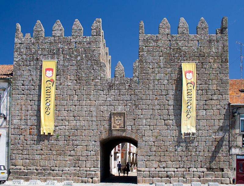 Desde aquí nos dirigimos a la IP2 que cruzamos con muchísima precaución para coger un camino que nos lleva hasta São Martinho. En esta población podemos recuperar el resuello para afrontar el ascenso a la atalaya en que se encuentra Trancoso. Siguiendo la carretera iremos disfrutando de unas bellas vistas de la fortaleza de Trancoso. A continuación, un camino y una antigua calzada, nos llevan ya hasta las Portas do Carvalho, abiertas en la muralla medieval perfectamente conservada que rodea el casco antiguo de la ciudad.