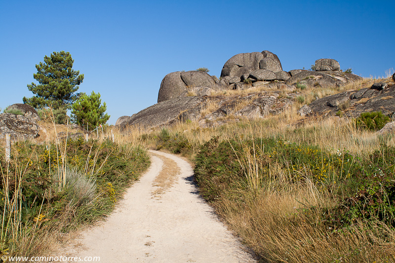 Desde la espectacular atalaya de Trancoso no queda otra opción que descender en primer lugar por la Fraga Acavalada, con sus bellos berrocales, hasta la Ribeira do Vale Azedo en Sintrão.