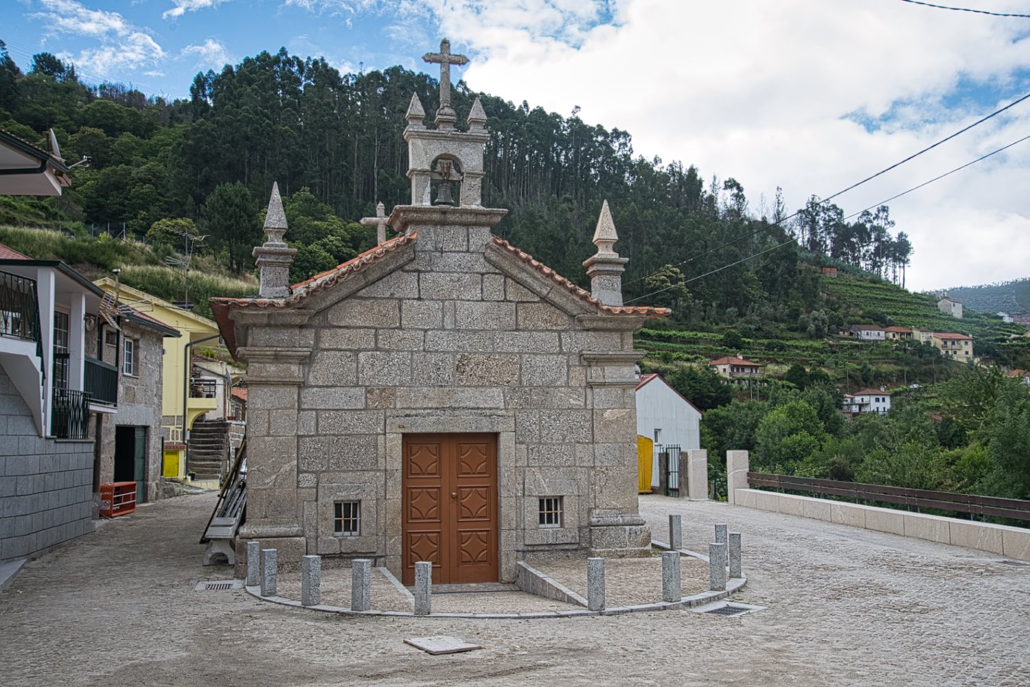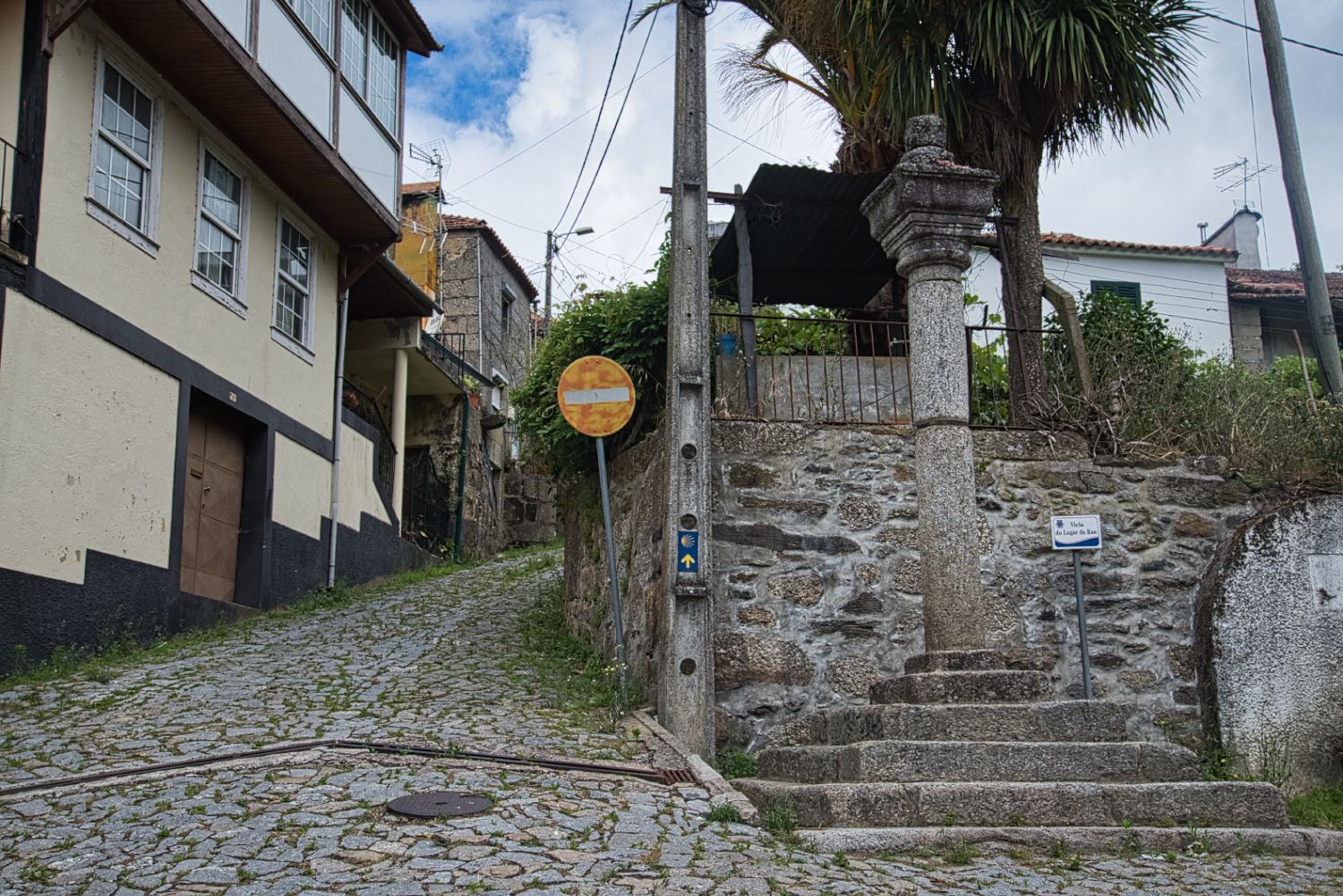 Desde Várzea descendemos levemente hasta una carretera desde la que divisamos claramente Teixeira y su iglesia parroquial dedicada a São Pedro. Al llegar a Teixeira nos encontramos con la capilla de Nossa Senhora dos Remédios, para enseguida cruzar el río Teixeira que nos ha ido acompañando hasta aquí. Al cruzar el río entramos en el centro de la población por el Largo do Pelourinho.