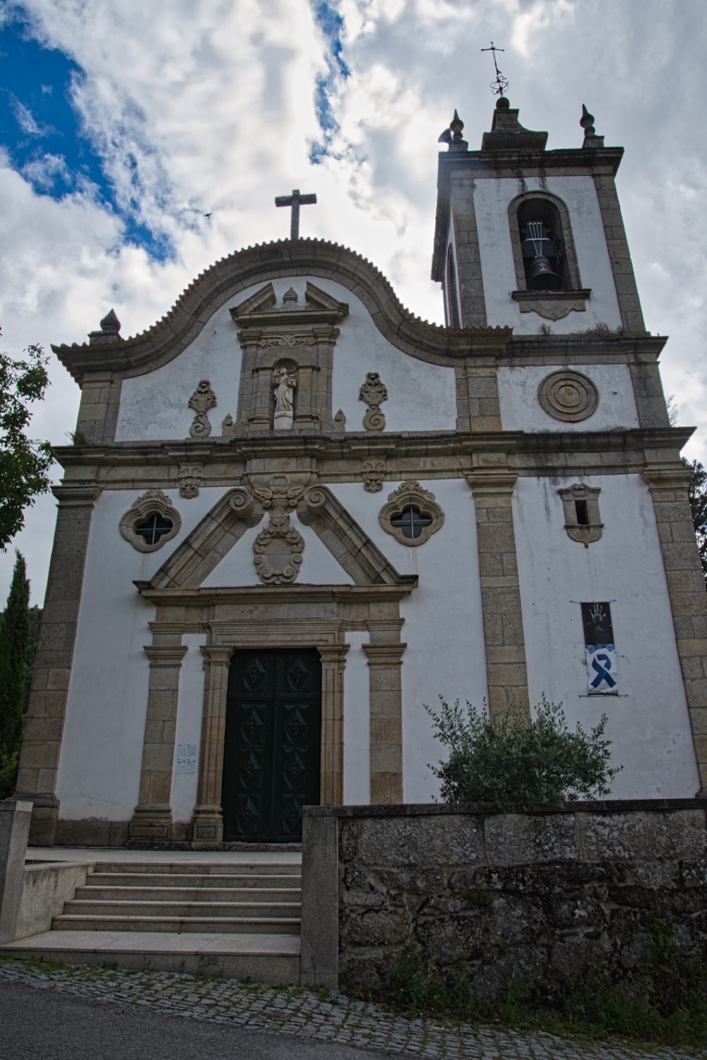 Finalmente llegamos a la iglesia parroquial que habíamos divisado anteriormente y después de unos pocos metros de asfalto nos desviamos a la izquierda por una pista que marca el comienzo de una pronuncia ascensión de más de 400 metros de desnivel. Pasamos por las aldeas de Ordem y Padrões, para poco después llegar a la carretera N101, que cruzamos con muchísima precaución, para enseguida coger una pista a la izquierda por la que continuamos la subida hasta el Alto de Quintela.