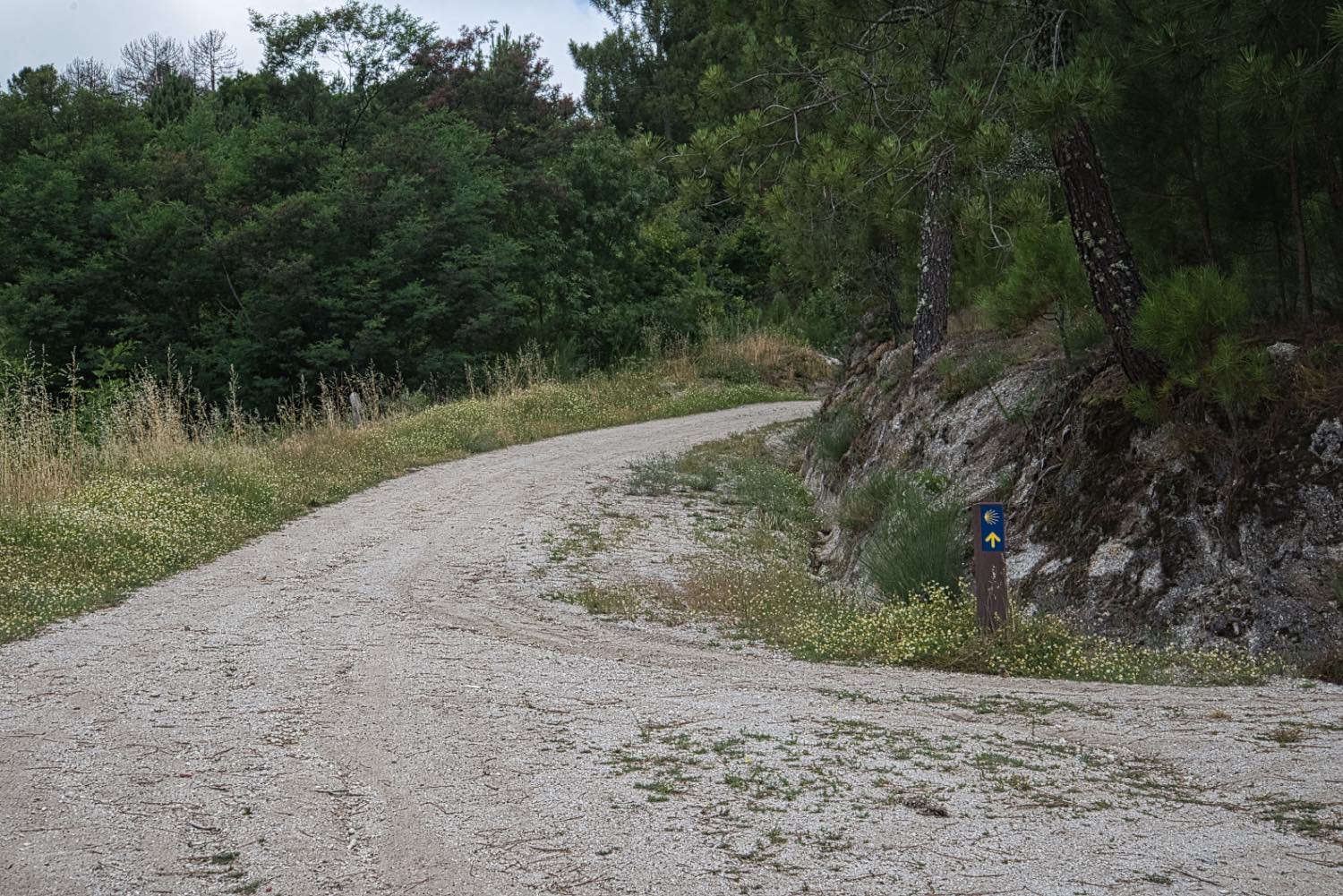 La señalización que ahora vemos, con postes metálicos, es distinta a las estacas de marcación que hemos encontrado en anteriores etapas. Esta marcación vamos a encontrarla en todo el municipio de Amarante, hasta que lleguemos a Lixa en la siguiente etapa. Desde el Alto de Quintela comenzaremos un descenso por una pista con desnivel pronunciado, hasta llegar al asfalto de la N321, próximo a Loivos do Monte.