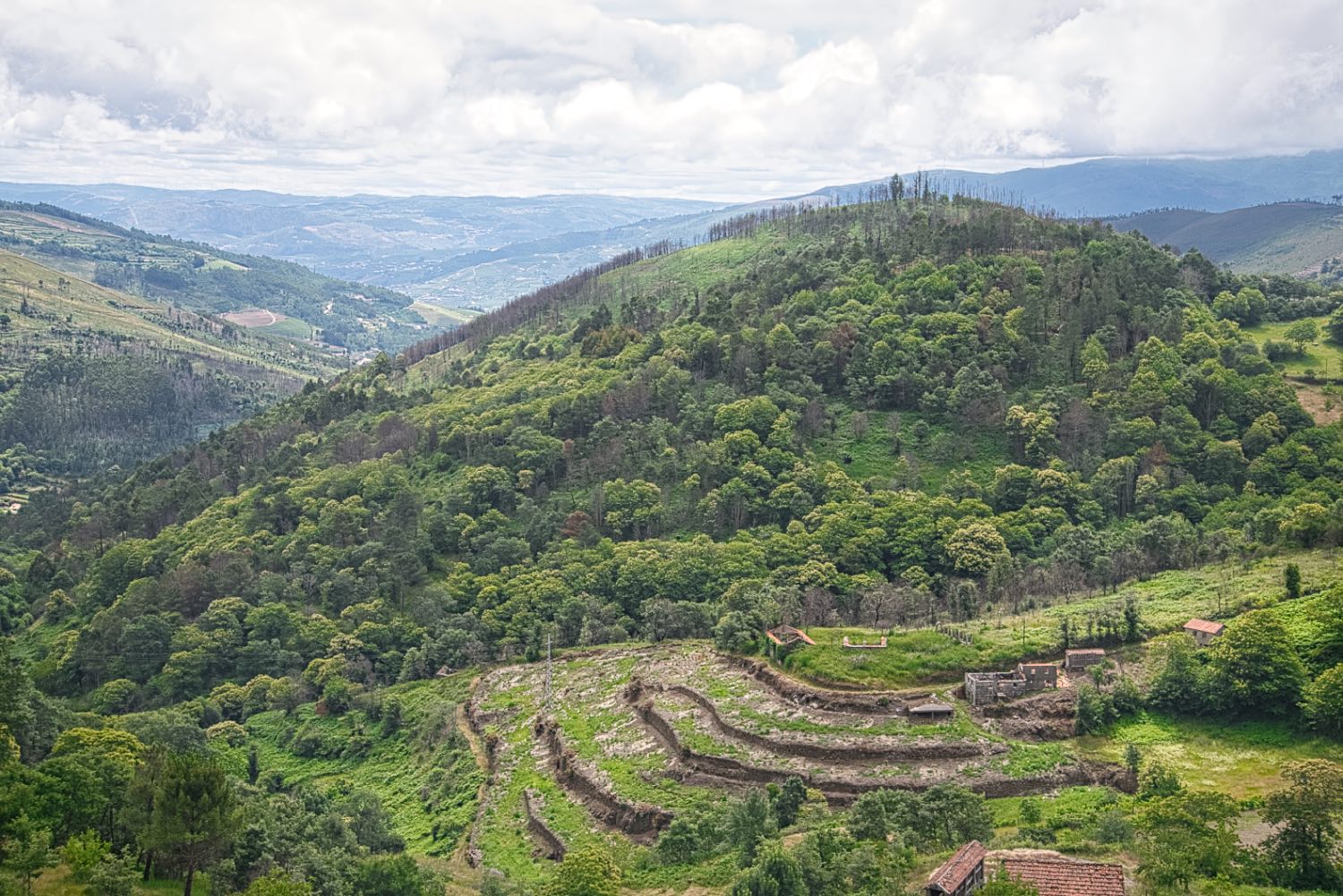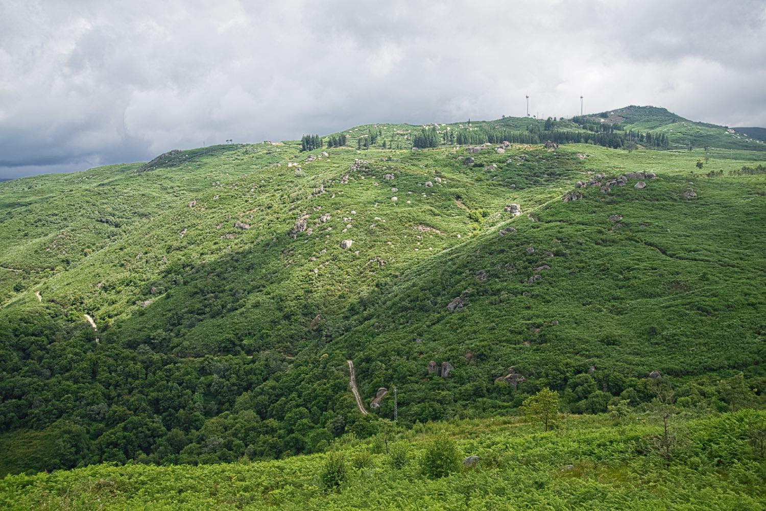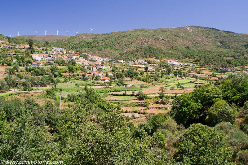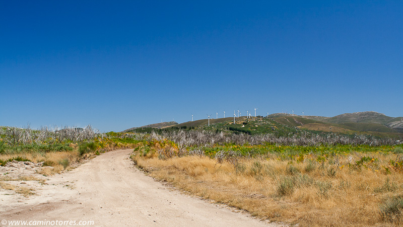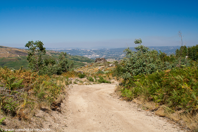 En este punto que se encuentra a 880 metros de altura nos encontramos en el «techo» del Camino Torres. A la derecha las vista de la sierra de Marão son espectaculares. A la izquierda divisamos los aerogeneradores, próximos al Chã das Arcas, en cuya proximidad se encuentra un yacimiento prehistórico con varios restos entre los que destacan varios dólmenes.