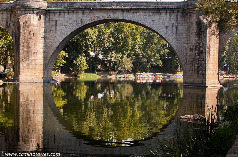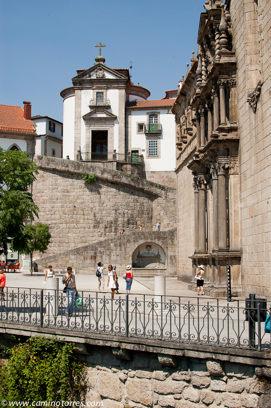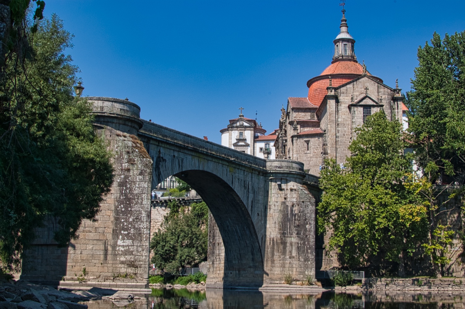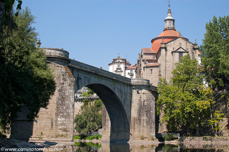 Ya sólo nos queda seguir por la bulliciosa Rua 31 de Janiero que nos lleva al majestuoso puente sobre el río Tâmega y al convento e iglesia de São Gonçalo, que parece vigilar el paso sobre dicho puente. En el Camino de Santiago Francés, Santo Domingo de la Calzada y su discípulo San Juan de Ortega, fueron los constructores de gran número de infraestructuras que facilitaron el tránsito de peregrinos hacia Santiago de Compostela. En este camino la figura emblemática es la de São Gonçalo, que en el siglo XIII reconstruye el antiguo puente romano sobre el río Tâmega, haciendo posible la unión de Tras-os-Montes con Porto, así como el tránsito de peregrinos hacia Santiago. El puente reconstruido que ahora cruzamos es del siglo XVIII.