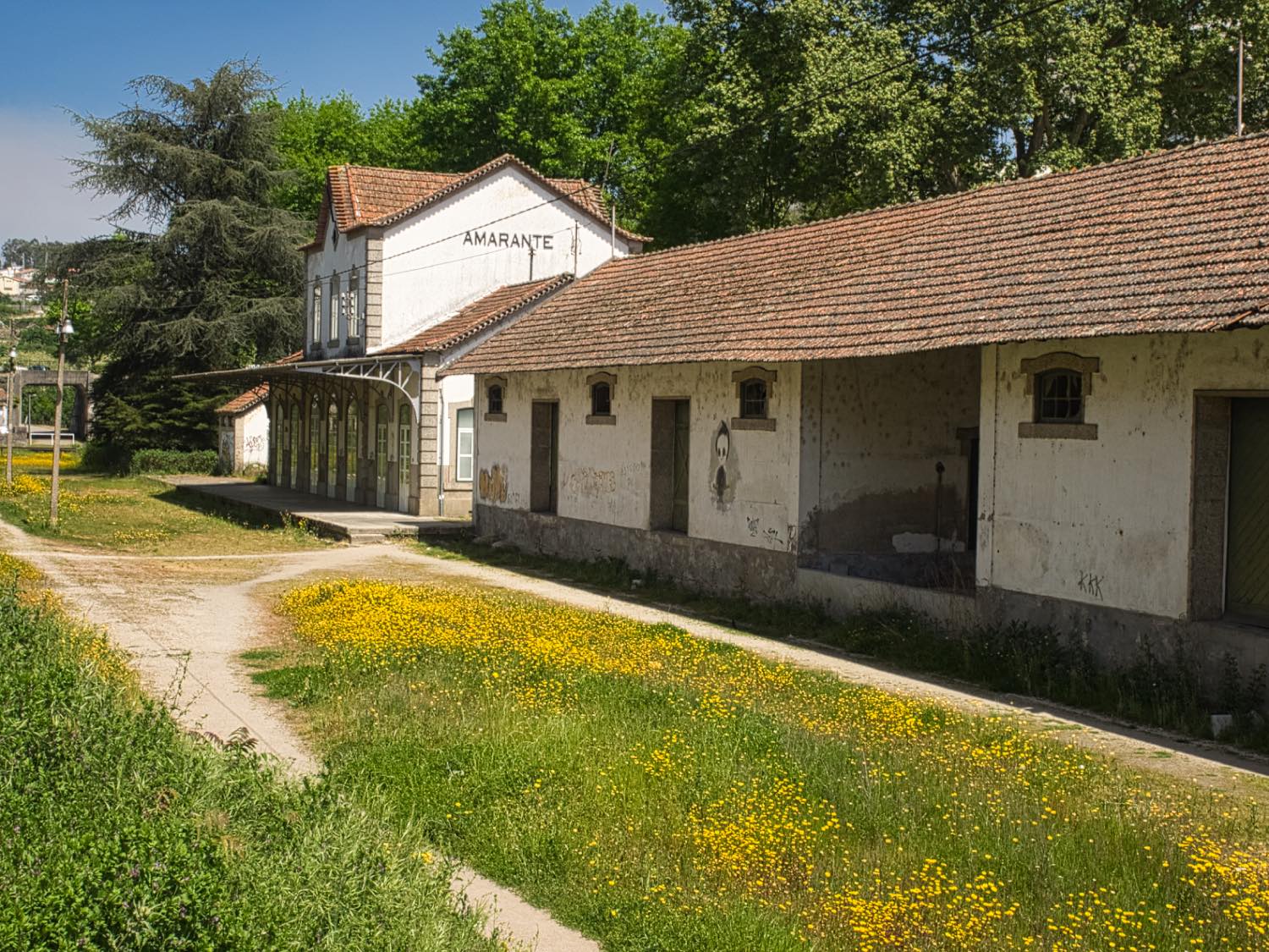 Desde el Largo de São Gonçalo, seguimos por las calles Teixeira de Vasconcelos, Miguel Bombarda y Miguel Pinto Martins que acaba en unas escaleras que nos llevan por detrás del Solar dos Magalhães. Vamos en busca de la antigua estación de tren, ya en desuso, y después de pasar un puente sobre la antigua vía férrea encontramos el comienzo de la Rua de Guimarães. Siguiendo esta larga calle vamos saliendo del centro de Amarante, aunque transitamos siempre por zonas muy urbanas de la periferia norte de Amarante.