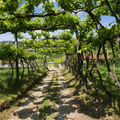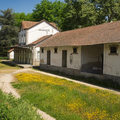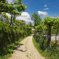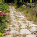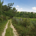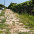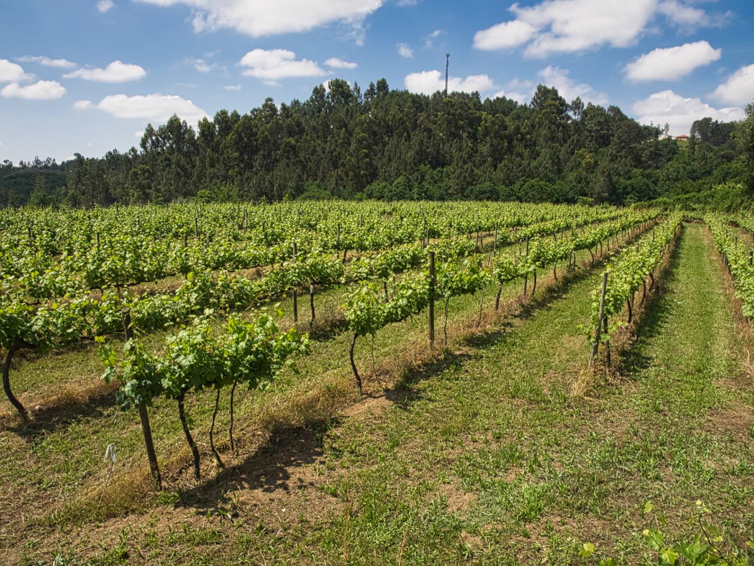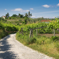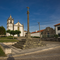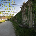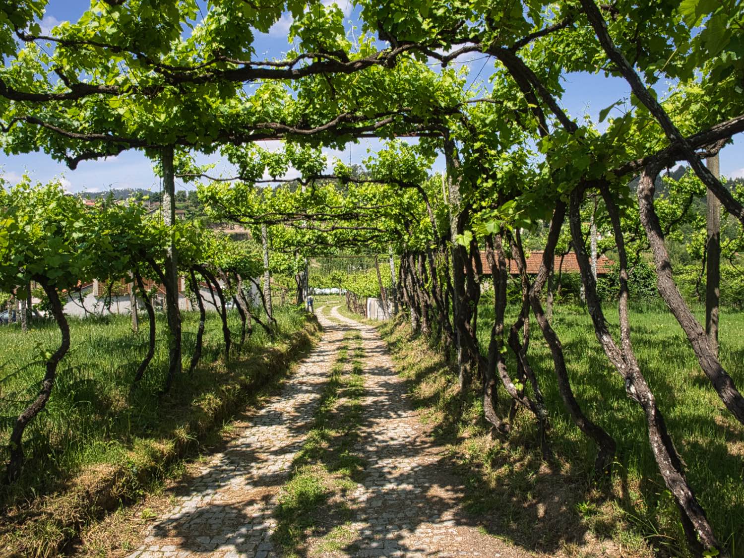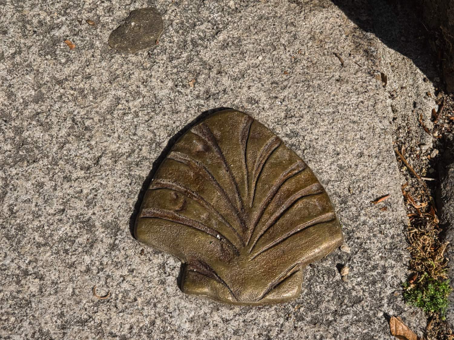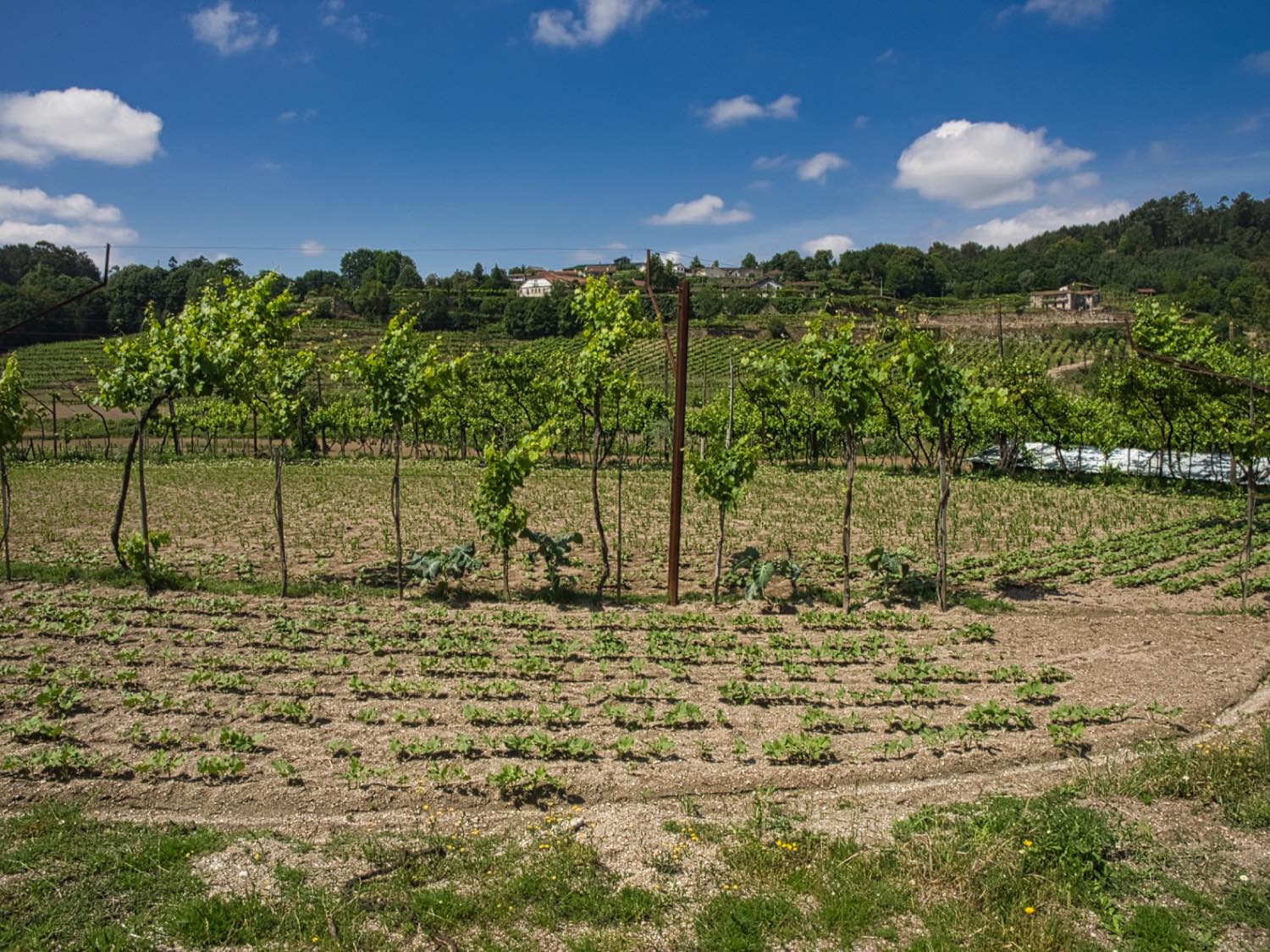 Nos espera un tramo urbano muy largo de más de dos kilómetros, hasta que la Travesa do Santo, que está empedrada nos va sacando poco a poco de nuevo al medio rural. Después de varios desvíos llegamos a un carretera asfaltada que se cruza con la Calçada da Piedade, justo en el punto en que encontramos un cruceiro. La calzada empedrada es medieval a pesar de que un cartel nos indica su origen romano. Subiremos por la calzada y enseguida llegamos al monasterio medieval de São Martinho de Caramos. El conjunto que forma la iglesia, junto al calvario y varias capillas y templetes constituyen un buen punto para reposar y coger fuerzas para afrontar los últimos kilómetros de la etapa que, de nuevo, serán por un entorno muy urbanizado.