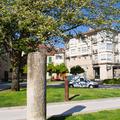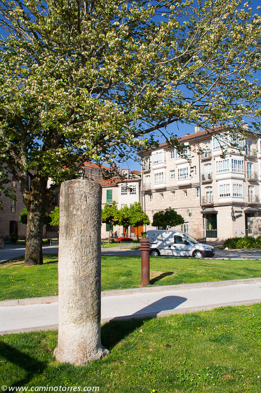 Dejamos la tranquila ciudad de Pontevedra para dirigirnos hacia el Ponte de O Burgo, por el que cruzaremos el río Lérez que va a desembocar algunos metros más adelante a la Ría de Pontevedra. Justo antes de llegar al puente podemos ver una réplica de un miliario de Adriano.