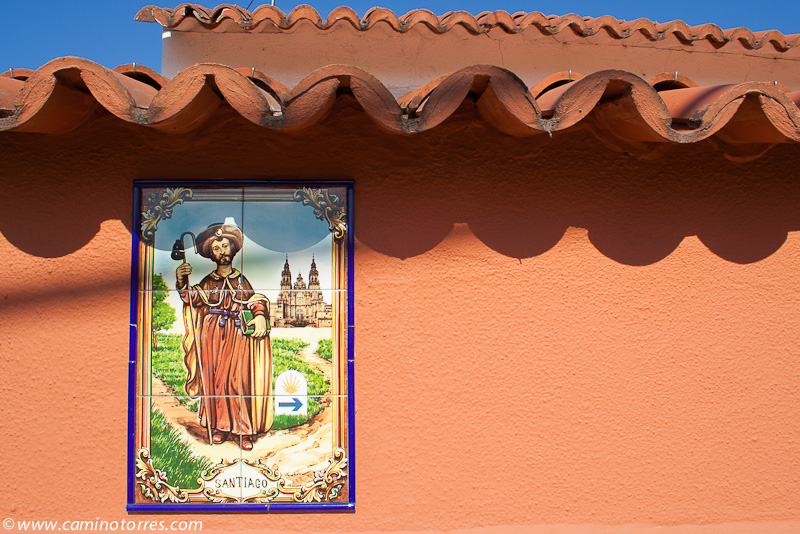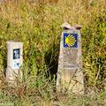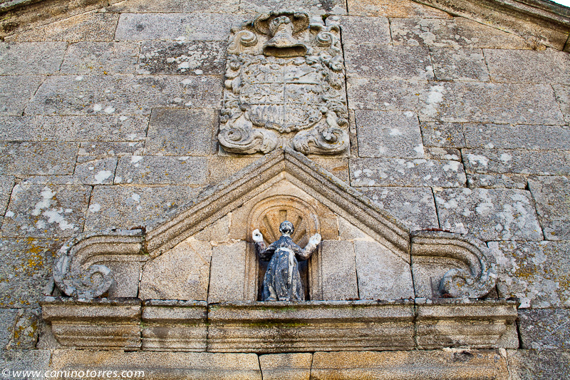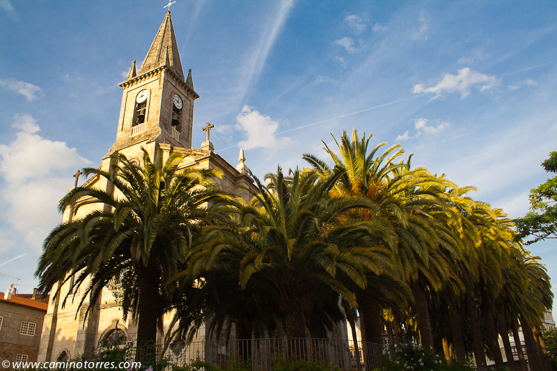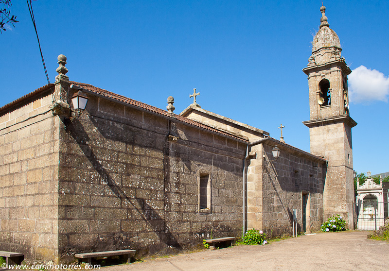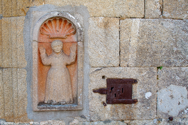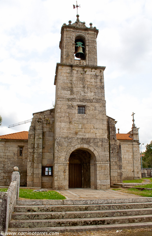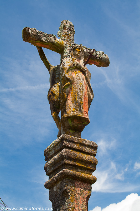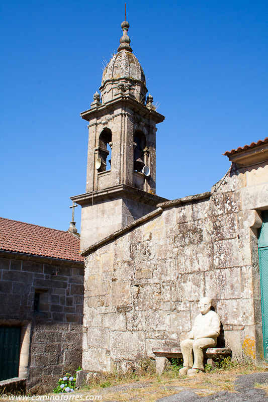 Llegamos a un bello rincón gallego, constituido por la iglesia de Santa María de Alba, junto con un cruceiro y un monumento jacobeo consistente en una calabaza de granito y un bordón metálico, ambos de grandes dimensiones.