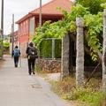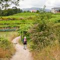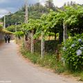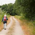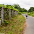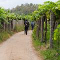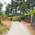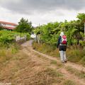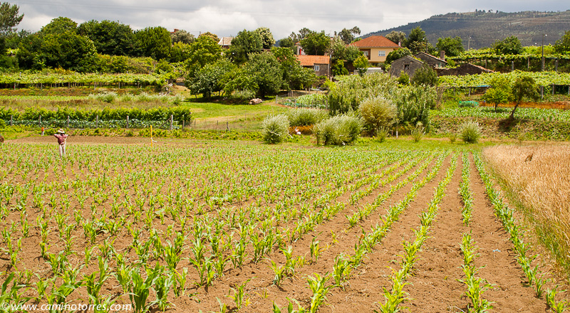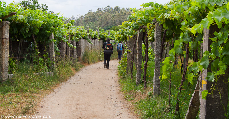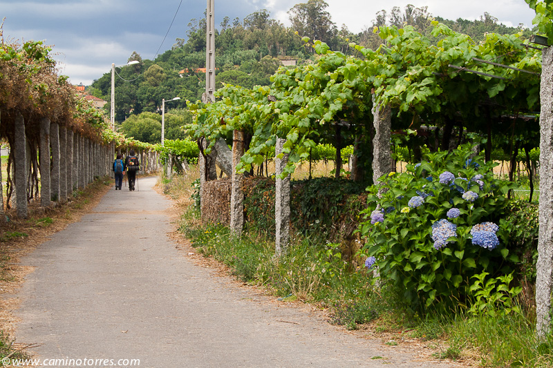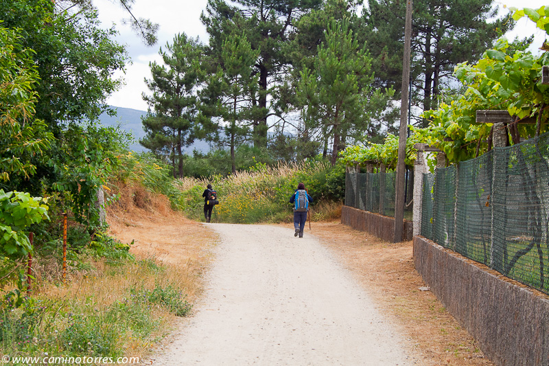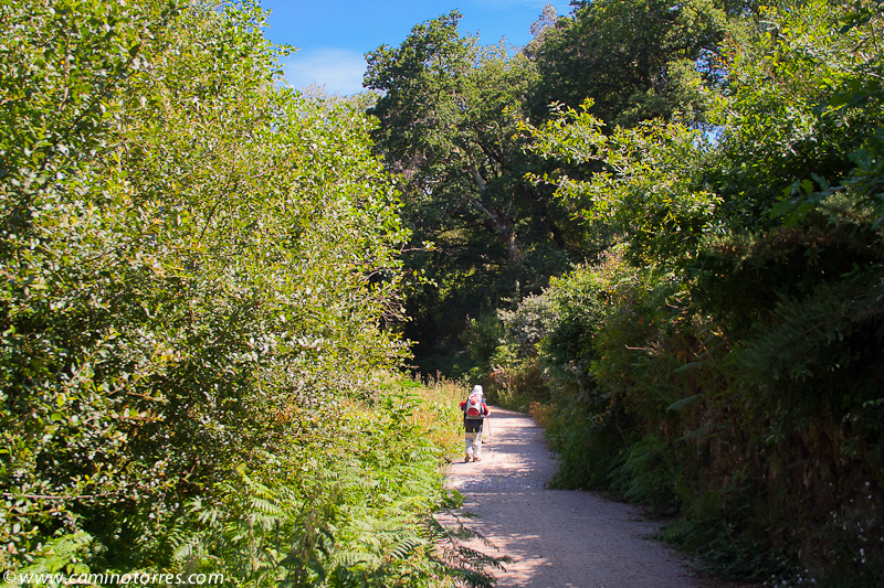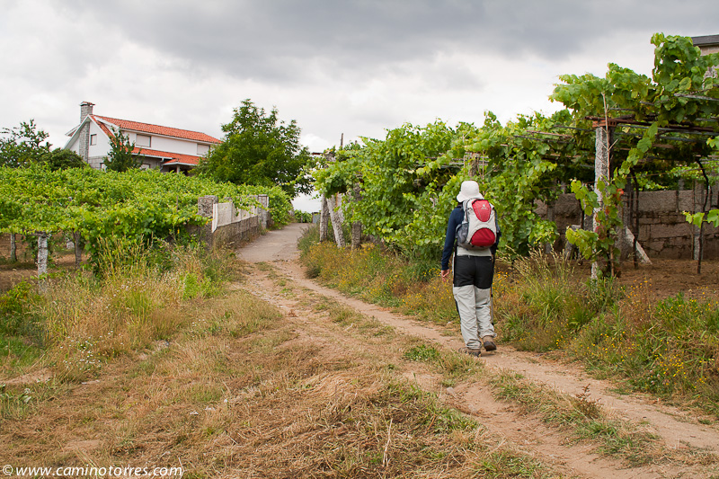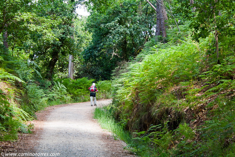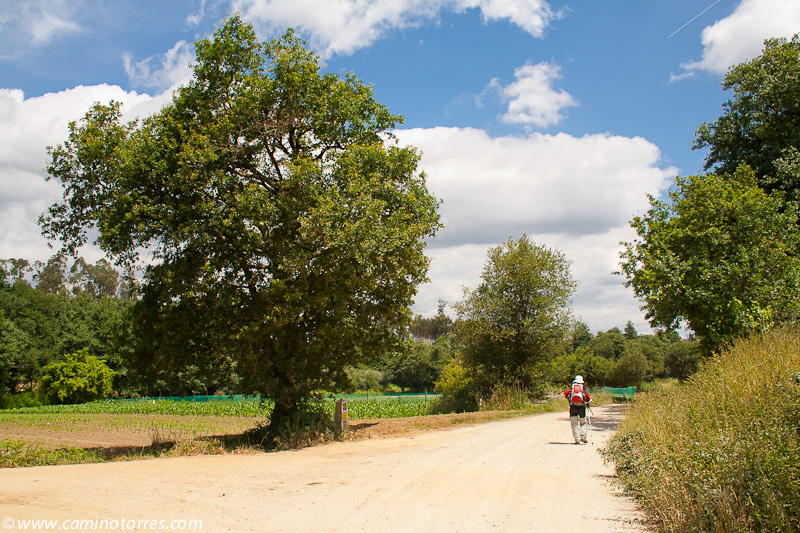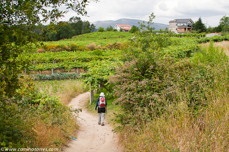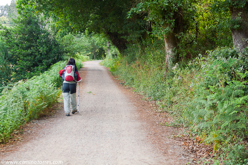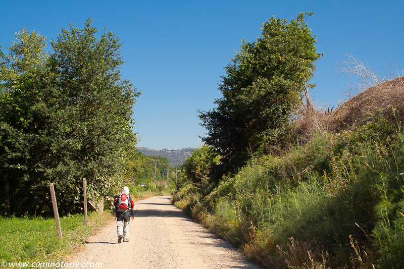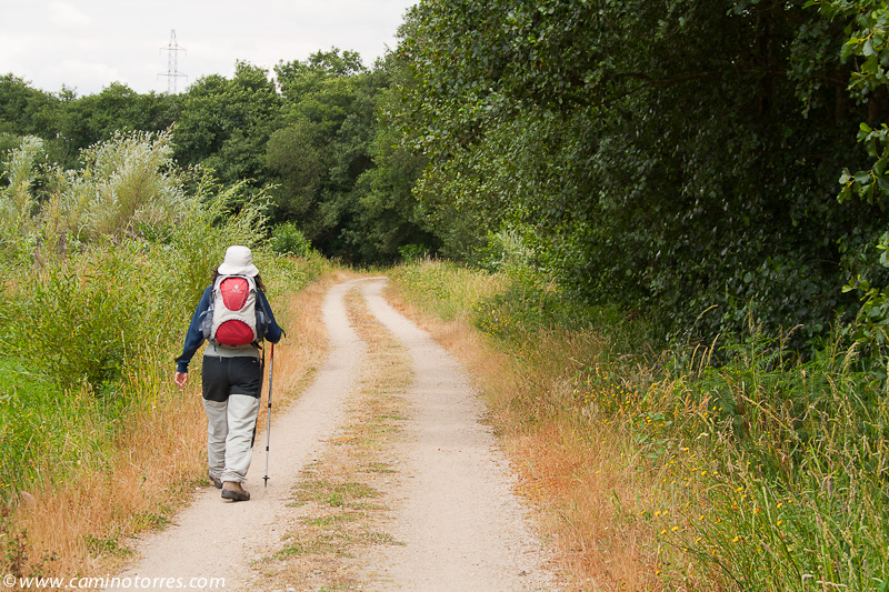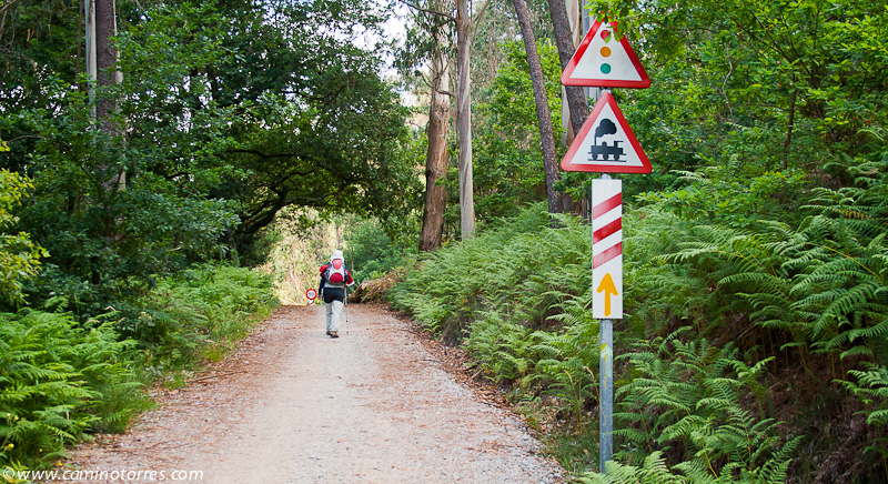 A la izquierda, después de pasar el puente, la rúa da Santiña nos saca inmediatamente de la ciudad y nos devuelve al medio rural. El caminante agradece esta circunstancia. Siguiendo las indicaciones confluimos con las vías del tren y continuamos en paralelo a ellas por una pista de tierra durante aproximadamente un kilómetro.