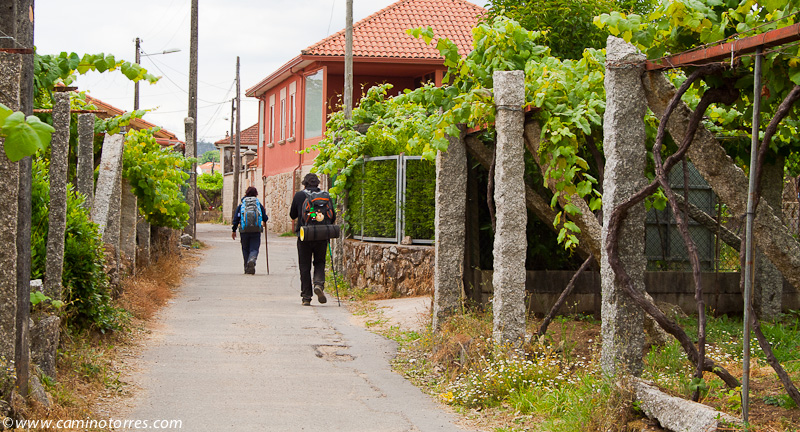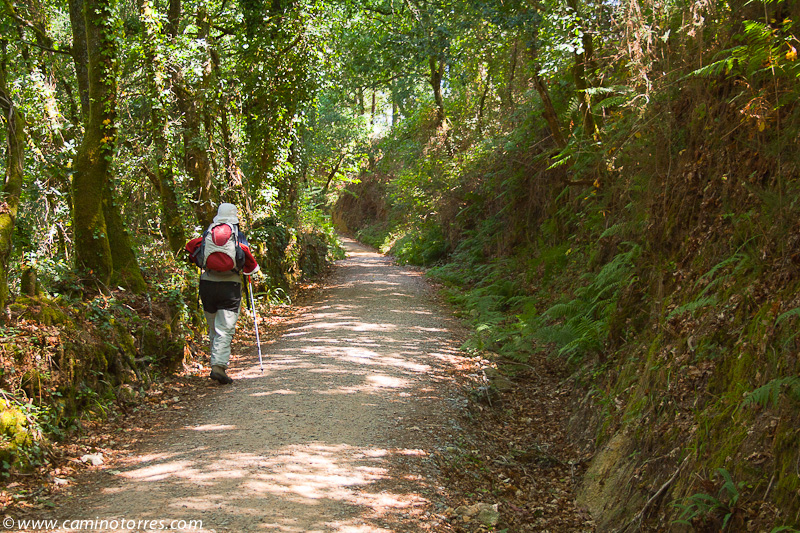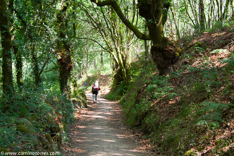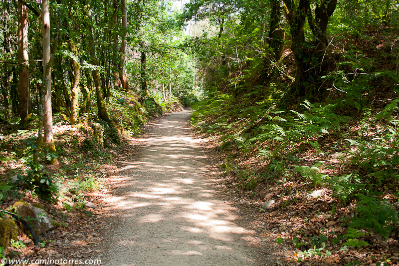 Seguimos, primero por asfalto hasta San Caetano y luego por pista, el camino que va, de nuevo, paralelo a las vías del tren y en ligera subida, por un tramo de bosque de carballos muy agradable. Cruzamos las vías y llegamos a la aldea de San Amaro, con bar y zona de descanso a la salida del pueblo. Salimos por asfalto y poco después encontramos el desvío al albergue municipal de Barro que se encuentra a 50 metros.