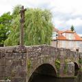 Nada más cruzar el puente, a la izquierda nos dirigimos a la Fonte das Burgas y llegamos a la rúa Real, que de forma tranquila nos permite ir atravesando la localidad y llegar al rincón más bello de Caldas de Reis, configurado por un cruceiro, el Puente Bermaña, una fuente de tres caños y algunas casas blasonadas.