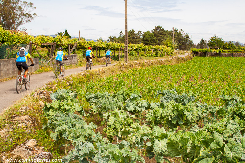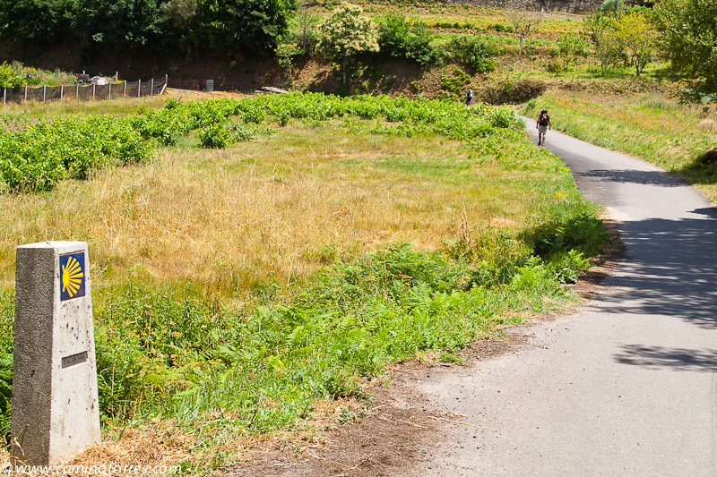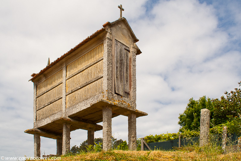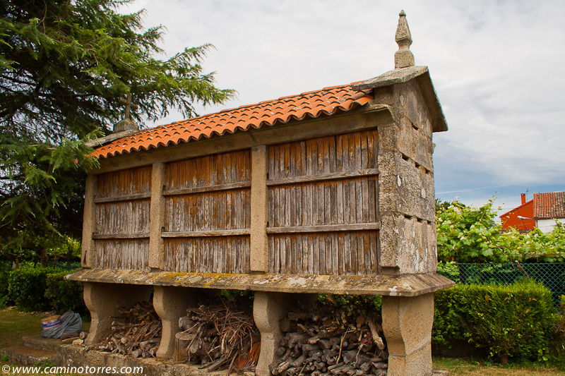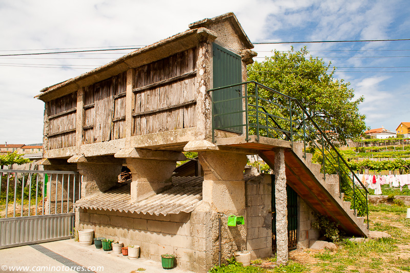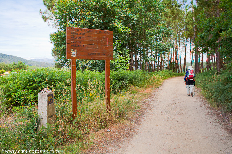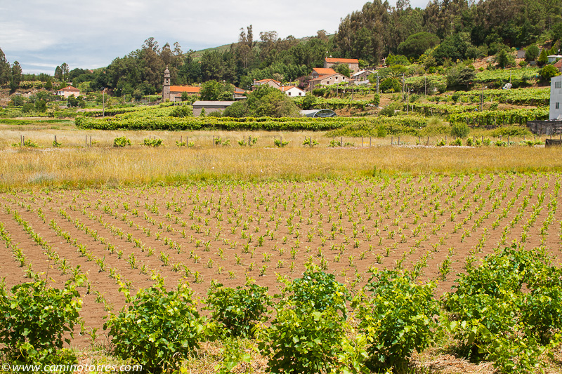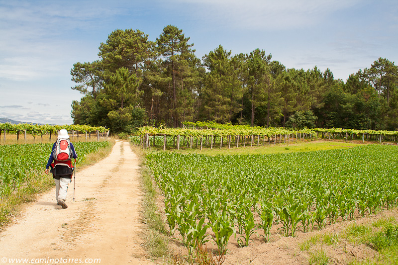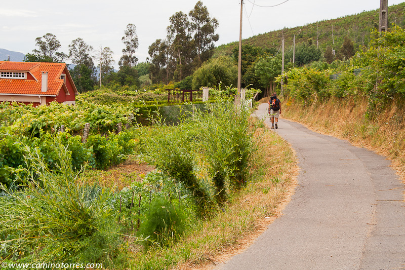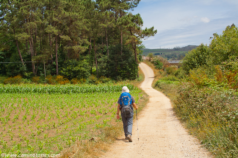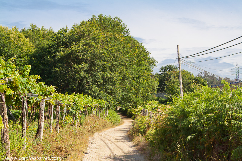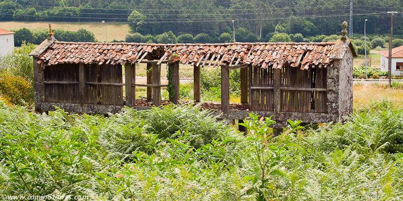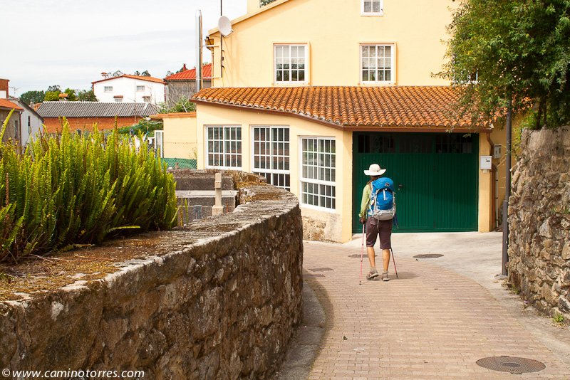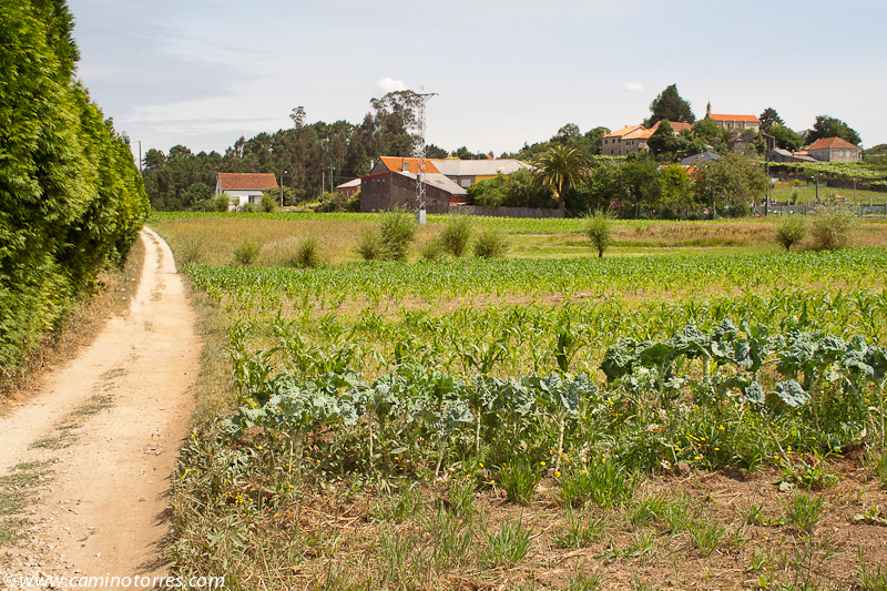 Por asfalto y más tarde por pista de tierra, entramos en el concello de Valga. Cruzamos la N-550 y poco después caminamos en paralelo a la autopista del Atlántico AP-9, que cruzamos por un paso elevado en las proximidades de As Cernadas, para continuar en paralelo, ahora por el lado izquierdo. Nos desviamos de la autopista para llegar hasta O Pino, donde podríamos pernoctar en el impresionante albergue de Valga, que se encuentra junto a la N-550.