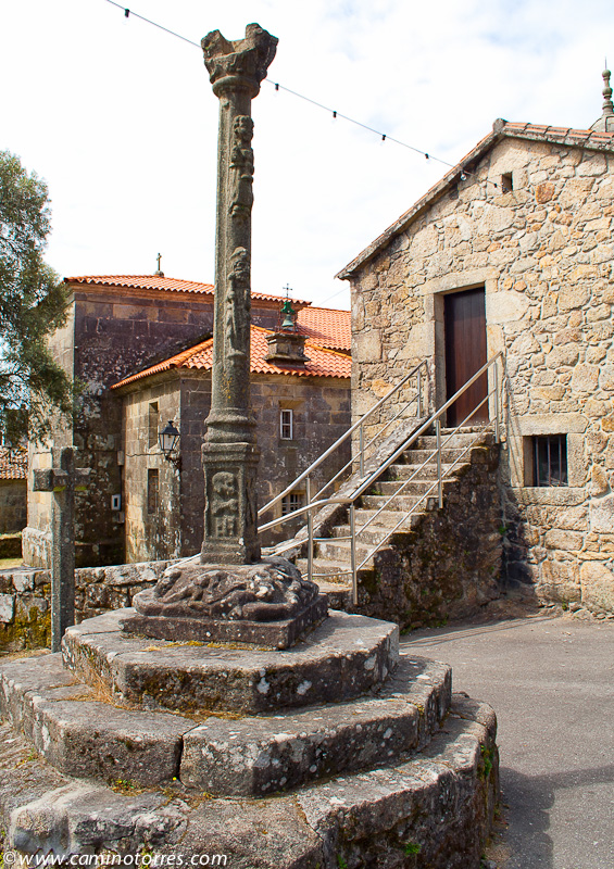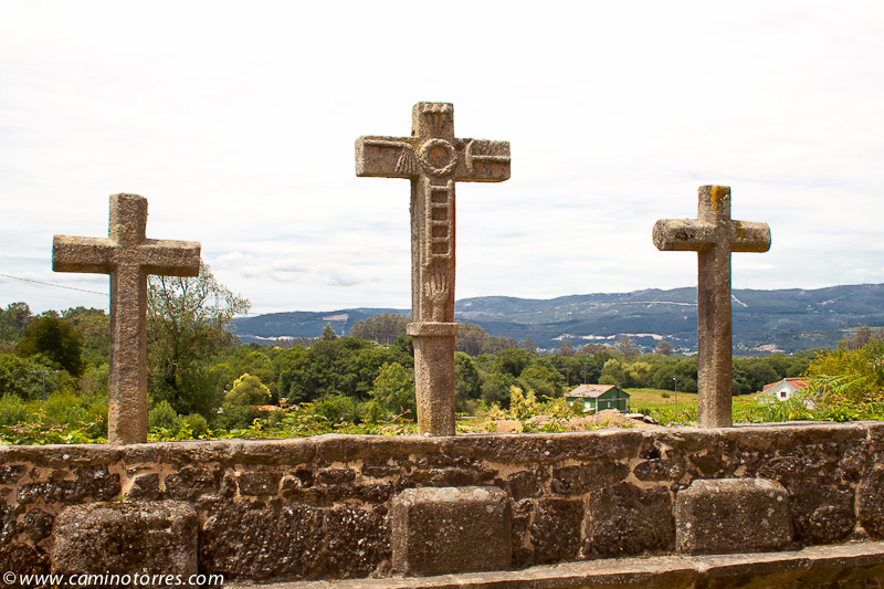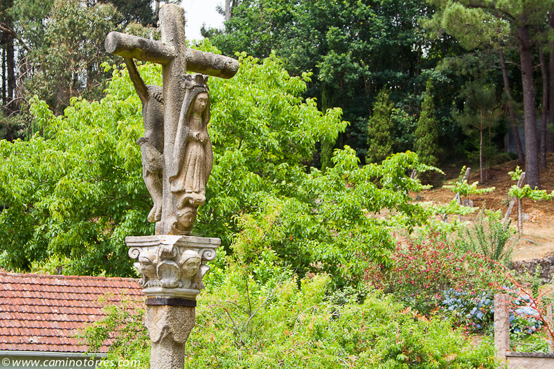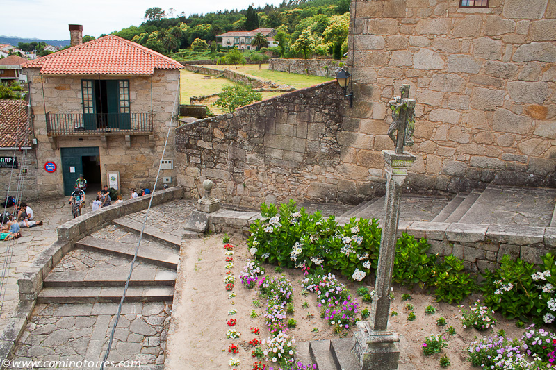 Se alternan caminos asfaltados y empedrados hasta que llegamos a Pontecesures y al cruceiro e iglesia de San Xulián, del siglo XII, y con restos románicos en sus modillones.