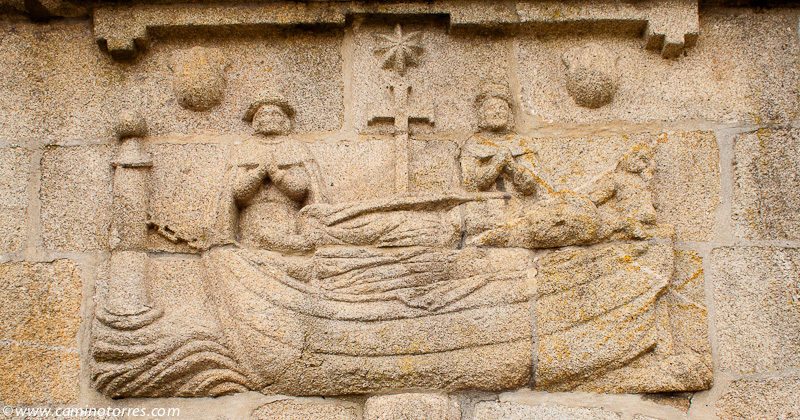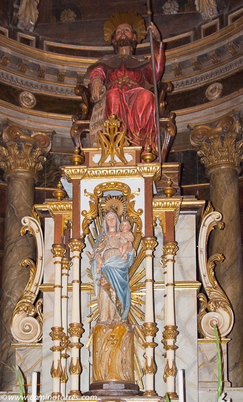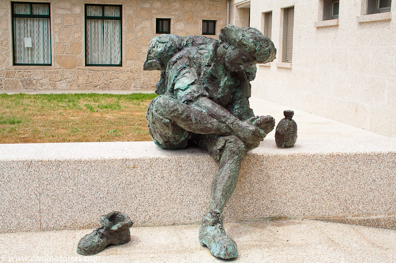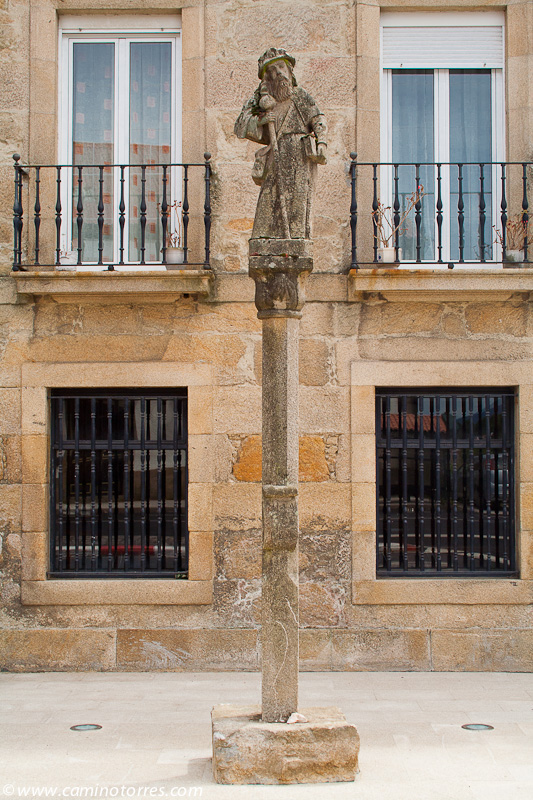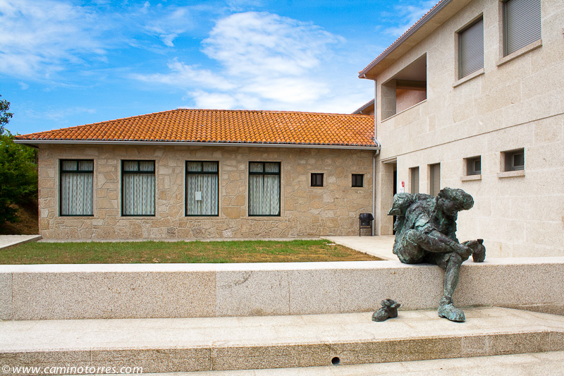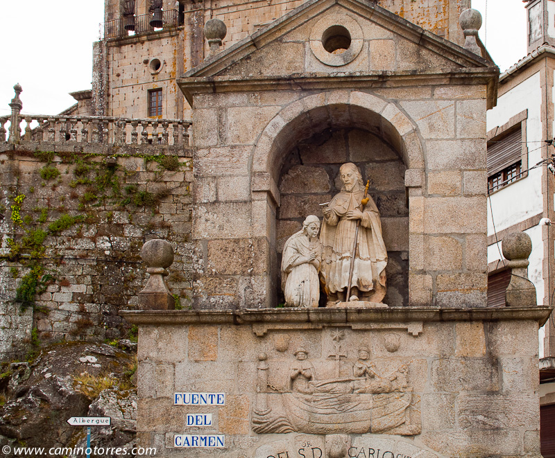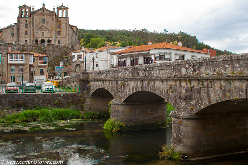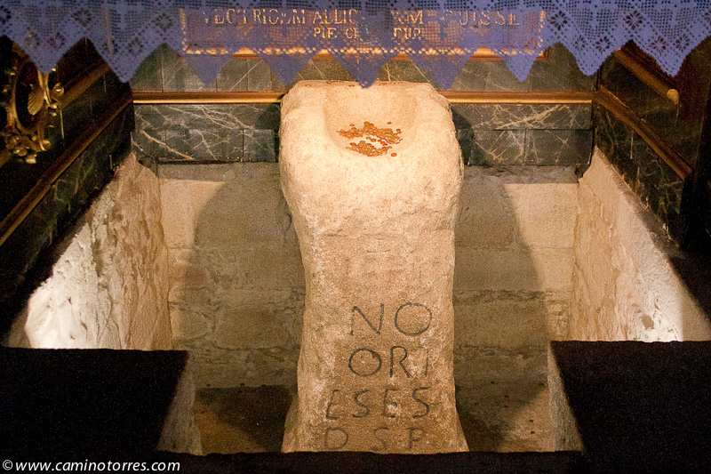 La piedra original, un ara romana, se encuentra debajo del altar en la iglesia de Santiago. Después de cruzar el río Sar por el puente, subiendo por una calle empedrada nos topamos con el albergue de peregrinos al pie del convento del Carmen.