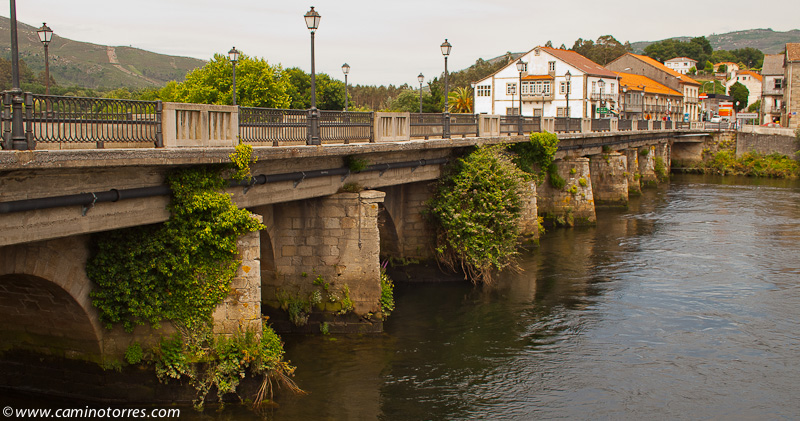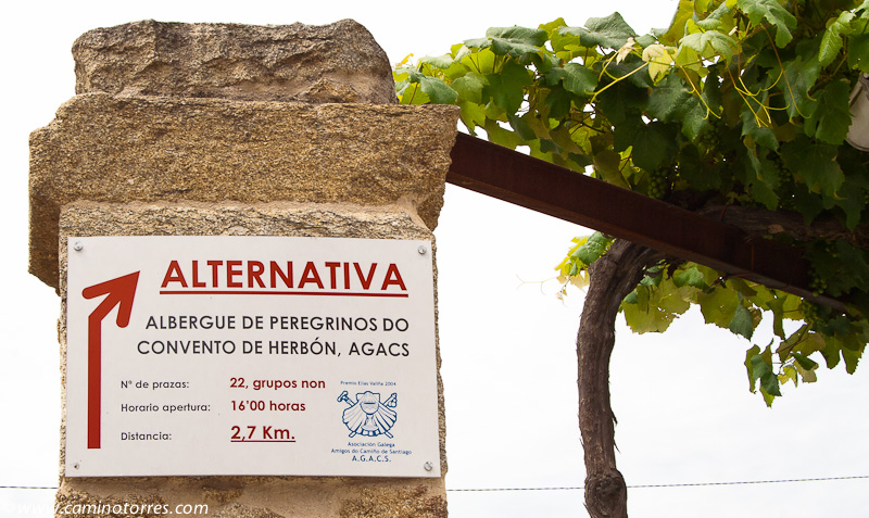 A cien metros llegamos a un cruce. A la derecha está señalizada la alternativa que lleva al albergue de peregrinos del convento de San Antonio de Herbón, gestionado por la Asociación Galega de Amigos do Camiño de Santiago (AGACS). A la izquierda, que es la opción que nosotros elegimos, vamos a dar una vez más a la N-550 y cruzamos el puente sobre el río Ulla.