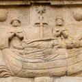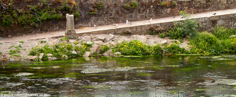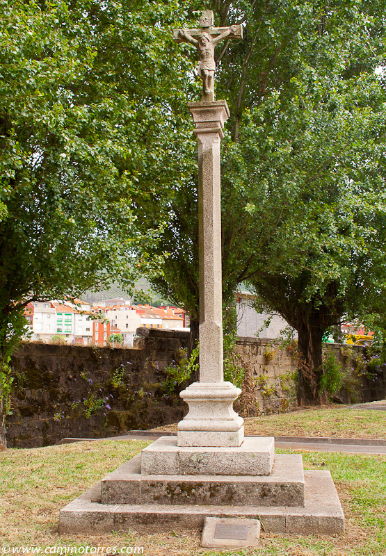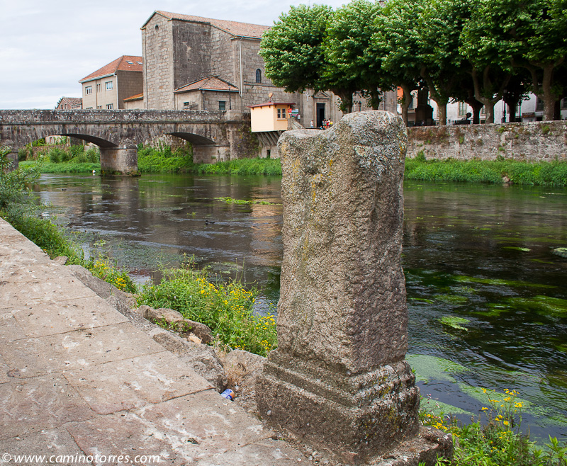 En seguida, torcemos a la derecha y vamos siguiendo el curso del río Sar que nos lleva sin pérdida hasta el centro de Padrón y su iglesia de Santiago. Estaríamos remontando el mismo río que, según la leyenda, recorrió la barca de piedra con los restos de Santiago justo antes de ser amarrada al pedrón al que debe su nombre esta ciudad. Desde la alameda del paseo del Espolón puede verse, al otro lado del río Sar, una réplica de dicho pedrón.